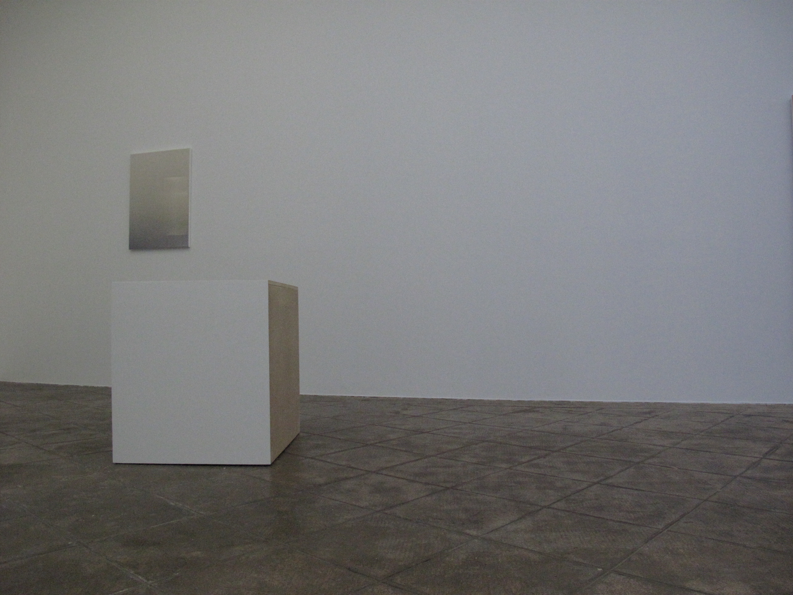Para ver esta exposición de Vermeersch, además de disponer de una cierta predisposición a dejarse llevar por lo que se pueda percibir, hay que ir dispuesto a sumergirse en el dominio de la técnica con el que este artista se aplica en el uso del óleo –como me hizo ver otro amigo pintor el día de la inauguración, completamente embelesado por lo que veía- o a intentar descubrir los intersticios de una pintura mural que, del blanco pasa al azul, en una suerte de gradación sinuosa de la que es imposible abstraerse. También es recomendable ir preparado a apreciar las huellas del propio artista aplicadas sobre superficies, hasta entonces, ajenas a la mano del hombre o a apreciar lo que este artista es capaz de ofrecer con ayuda de la pintura, sus pinceles, la fotografía, el espacio y los cuerpos de nosotros mismos. Pero no todo acaba aquí: frente una producción cuyo vínculo con la abstracción monocromática es más que evidente, a la que se descubre –porque alguien te lo dice o porque lees la hoja de sala- que la fuente de la que parte este artista son imágenes reales procedentes de sus propias pinturas o de “cielos despejados al atardecer”, la cosa empieza a adquirir una dimensión más especial. Y es que, más que imágenes captadas con ayuda de una cámara, las suyas son los puntos de los que parte para la concepción de sus instalaciones pictóricas concebidas para traspasar el espacio bidimensional e invitar al espectador a tomar conciencia de la realidad por la que todos nos movemos. Aquella donde existimos.