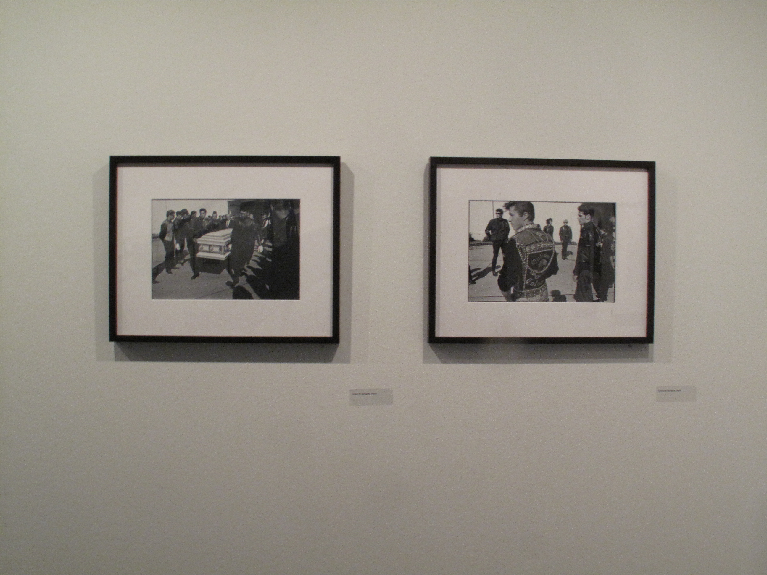 La que emerge desde dentro, desde las entrañas, desde el corazón, es la serie titulada The Bikeriders y que Lyon llevó a cabo entre 1963 y 1967. Contrariamente a lo que pueda parecer, no se trata de una serie formada por una brillante recopilación de imágenes sino del reflejo del estilo de vida que llevó a cabo el propio Lyon siendo miembro del Chicago Outlaws, un conocido club de motoristas con el que este fotógrafo convivió cuatro años viajando con ellos por las carreteras del medio oeste americano. Así como Joan Colom entendió que su misión consistía en ser “como una especie de notario de su época”, lo que pretende Lyon con esta serie, de gran popularidad en los años 60 y 70, es “registrar y glorificar la vida del Bikerider americano” más allá de una mirada documental y más cerca del rostro de un sentimiento primigenio. En consecuencia, más que una mirada objetiva, la suya es la interpretación personal de unos motoristas a los que conoce y aprecia sin intermediación y con quienes lucha por extraer la esencia de ese espíritu que entre gestos, descansos, miradas, compañías, concentraciones, entierros, momentos de espera, rugir de motores, melenas al viento, tupés, gafas de pasta blanca y la sorpresa de otro beso entre el cuero de dos chupas, emana de un tipo de vida hecho a base de kilómetros, carreteras, polvo, viento, sol y lluvia. Algo que, años después, en otro registro y en versión nacional tan bien supo reflejar Alberto García-Alix fijándose en su entorno más inmediato.