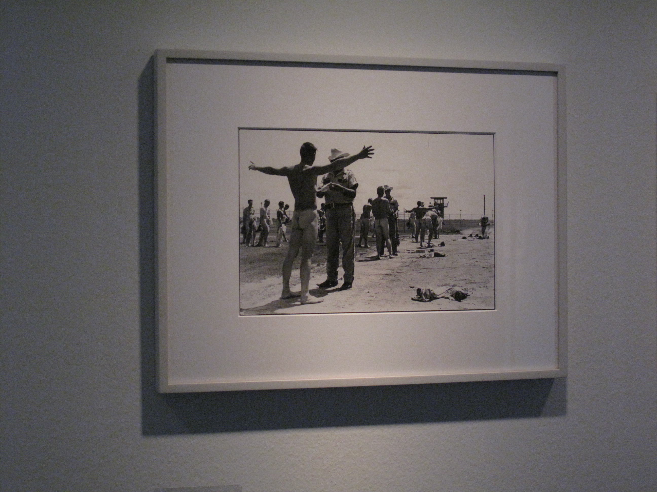 Primera entrega: Aunque me enteré tarde de la exposición de Danny Lyon, todavía pude ver la que fue su primera entrega. Se trataba de la serie Conversations with the dead realizada en 1968 y centrada en el trabajo que realizó este fotógrafo a partir de la situación de las prisiones del estado de Texas a finales de la década de los 60’S. Perteneciente como las dos series que le seguirán y de las que ya hablaré a la colección Martin Z. Margulies –una colección con la que la Fundación Foto Colectania parece que ha iniciado una colaboración a largo plazo con el fin de dar a conocer al público esa parte de sus proyectos relacionados con la fotografía- la serie de 76 fotografías realizadas por Lyon durante 14 meses entre 1967 y 1968 en el Departamento correccional de Texas, muestra la imagen de unos presos que, al margen de su privación de libertad, viven, conviven, se relacionan y son los protagonistas del trabajo de quien congenió con ellos hasta el punto de entenderlos como seres reales, individualizados y merecedores de ese trato humano que, sistemáticamente, parece que se les niega desde la burocracia, la ignorancia y la desidia. Según se desprende de lo que dice el propio Lyon, si bien esta serie retrata una realidad, lo que retrata en verdad es el rostro de una frustración. La de no haber conseguido captar en 14 meses lo que sintió en unos minutos en el pasadizo de la prisión de Ellis. Pese a que esta incapacidad es la que percibe el fotógrafo, vale decir que las imágenes de esta serie nos acercan por igual tanto a unas vidas sin libertad como a la mágica dimensión que adquiere un beso entre dos hombres. Lo cual no es nada fácil.