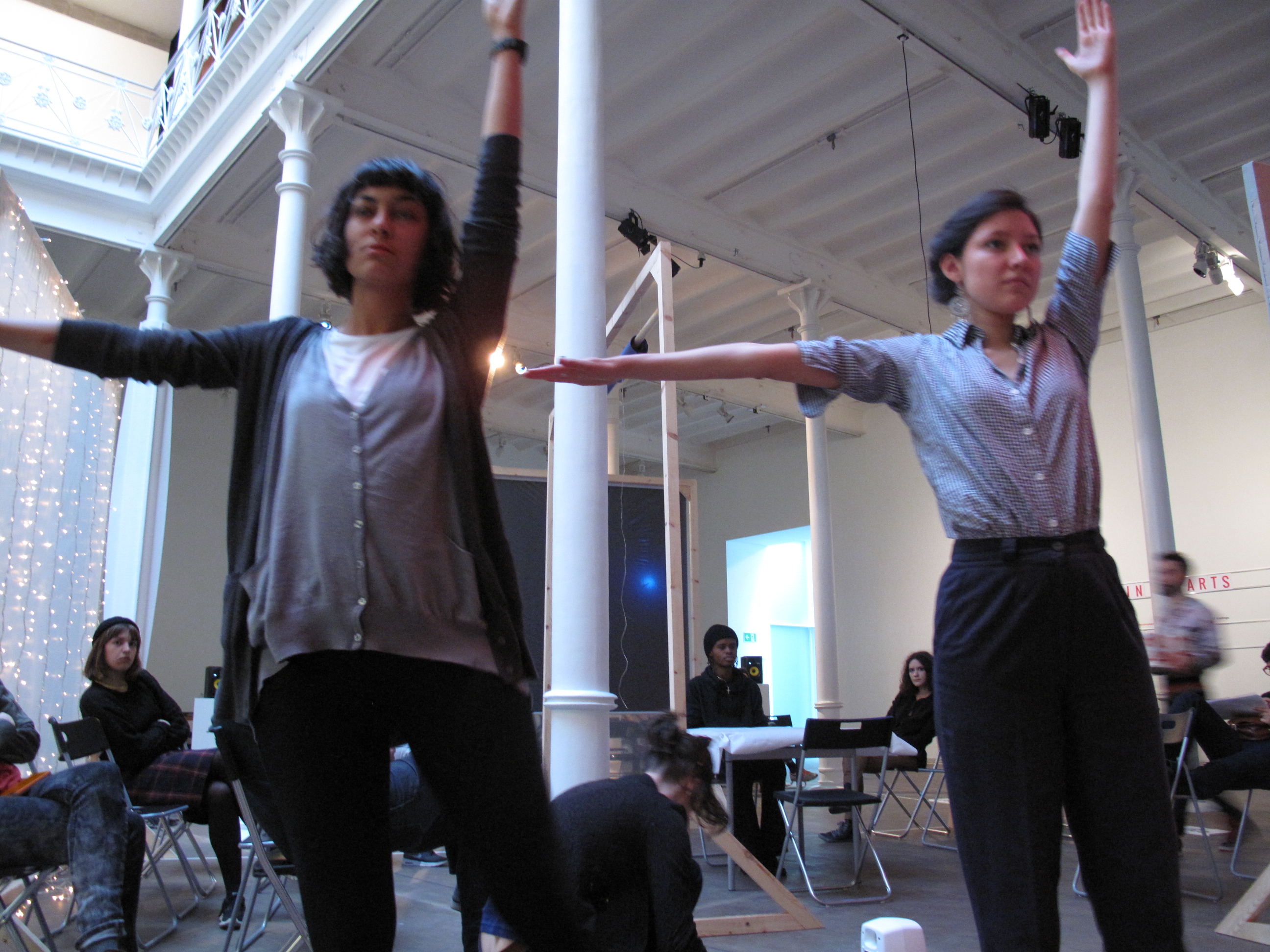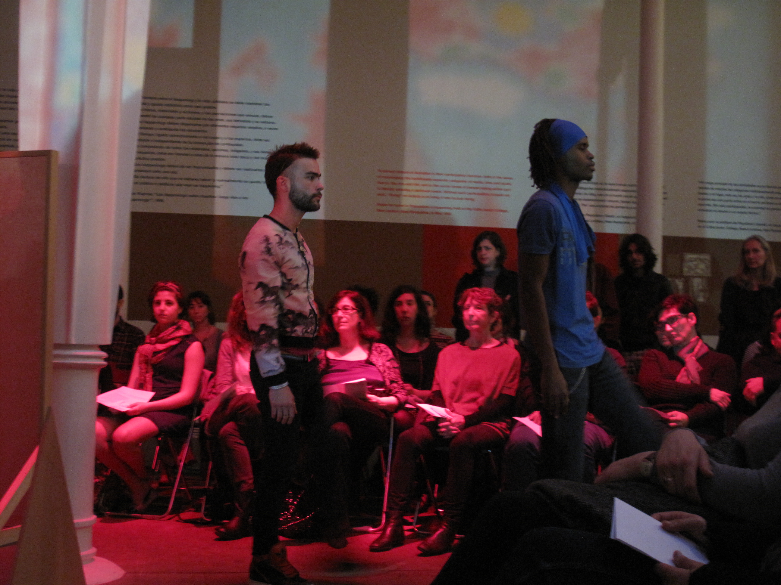 Cuando tras cuatro días de ensayos asistí como público a la representación de este happening , no sólo disfruté de lo que estaba viendo sino que entendí que el proceso previo a su realización había sido lo que, realmente, me había puesto sobre la pista de Kaprow. Lo cual no quiere decir que me supiera a poco. Quiere decir que una vez vivido, experimentado y deglutido, la razón de su representación adquiría otro sentido. De modo que si el movimiento de los actores, la creación sonora de Jan Mech, la rigidez de la coreografía, la actitud del público, su reacción frente a lo que veían, la libertad reinventiva de Dora García y la especie de comunión que existía entre todos los asistentes merecería, de por sí, un análisis pormenorizado, me voy a parar en este punto porque de cuanto he dicho ya existe documentación. Al alcance de quien quiera.