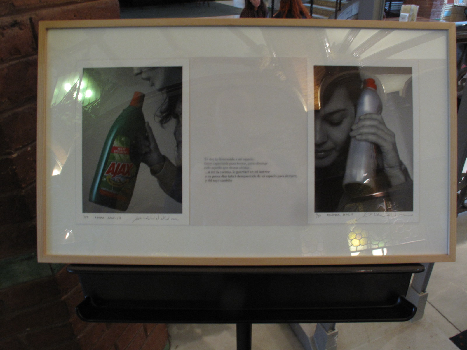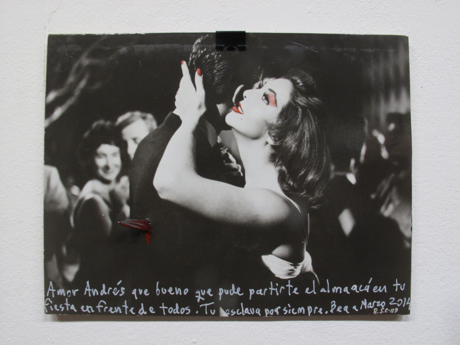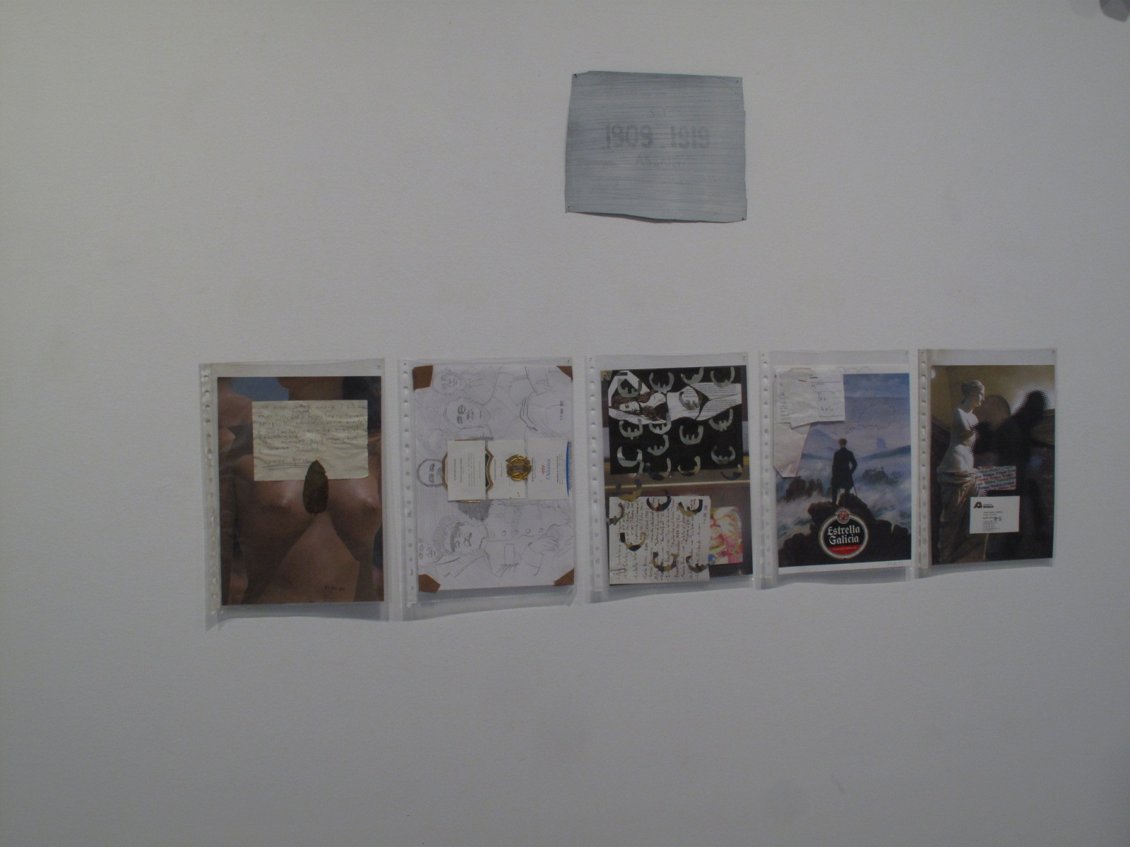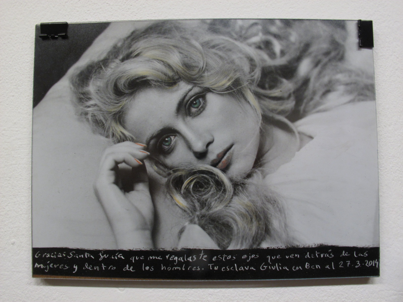 Como novedad frente a este tipo de obra tan habitual en Gino, hay en la exposición una serie de fotografías tuneadas que, directamente, son una verdadera maravilla. Se trata de un material extraído del cajón que el artista viene creando desde hace años para la confección de sus pinturas pero que aquí se muestra sin cortar, ligeramente alteradas y reconvertidas en obra per se, merced a la incorporación de un texto y su derivación en ex-voto.