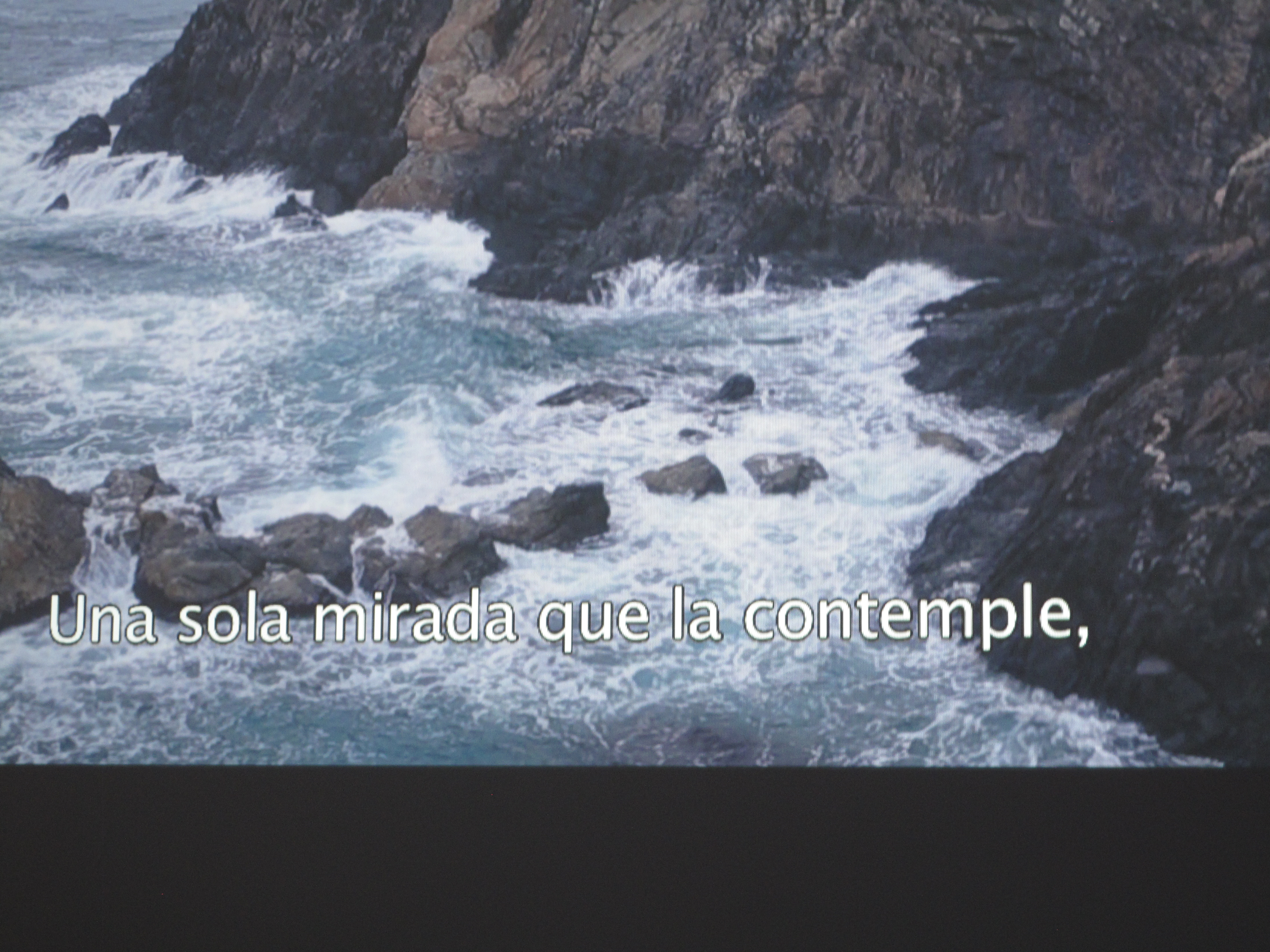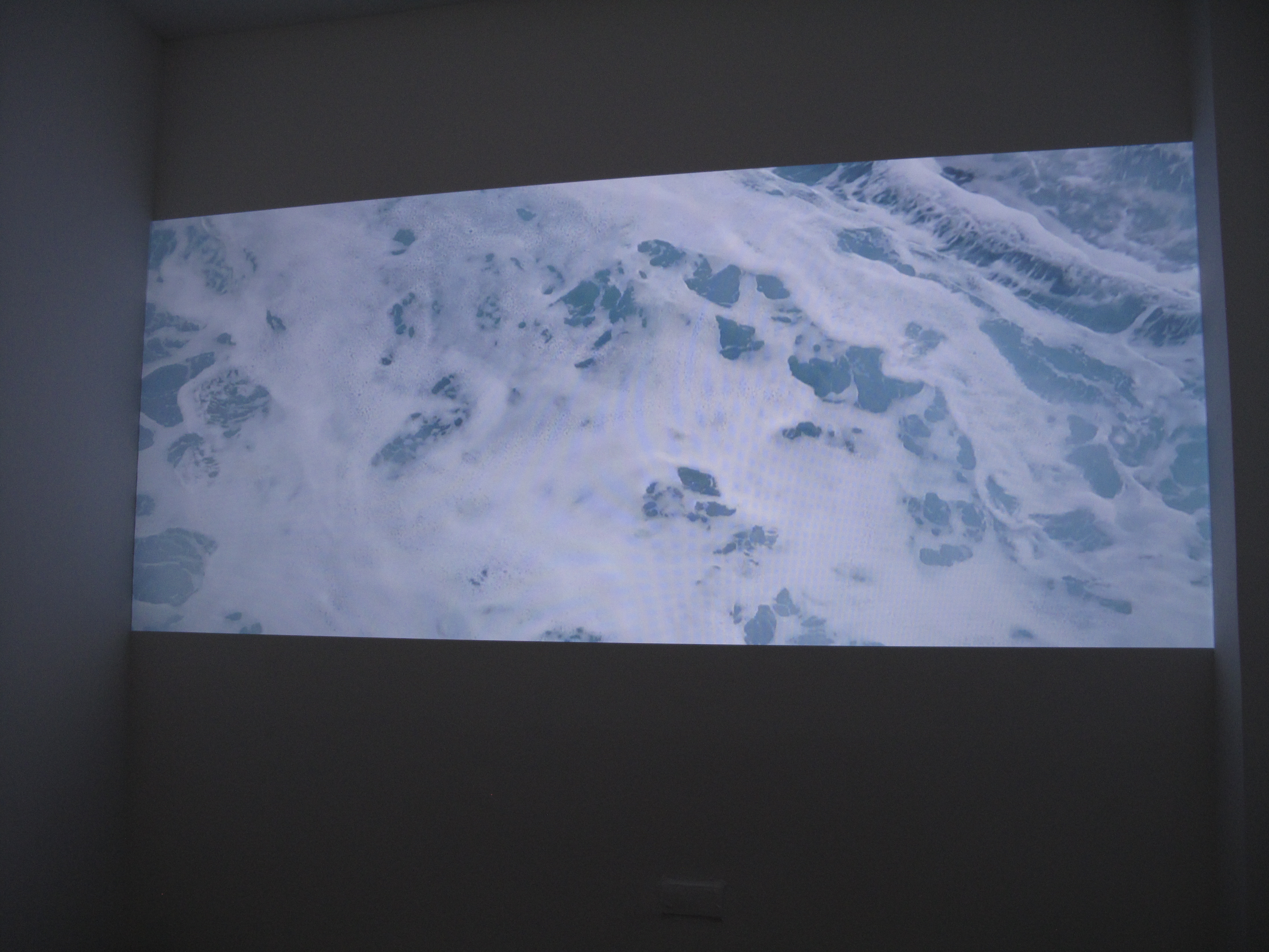 Aunque no voy a ser yo quien diga más ni mejor que lo que ha escrito Andrés Hispano en la hoja de sala de la exposición -ni soy tan ducho en lenguaje cinematográfico ni en referentes audiovisuales ni en cultura de la contemporaneidad ni en la acumulación de datos interesantes- diré que la propuesta de Pol Gonzalez me parece absolutamente acertada para acercarnos a lo que nos quiere contar: la historia de una película que no llegó a rodarse y de la que el artista tiene noticias a partir de una entrevista realizada a su director, Olivier Giroud. Colmada de espacios en negro, narrada en francés por una aterciopelada voz de hombre y caracterizada por un más que sutil carácter absorbente, envolvente, misterioso y tan fluctuante como las olas de un mediterráneo que nos acompaña en todo momento, le quatriéme mur es la coartada perfecta para informar al espectador acerca de la necesidad de participar en la película como hace Pol, el artista, o Giroud, el director de la película. En consecuencia, más que una narración lineal, de observación pasiva o, como dice Hispano, próximo a lo que sería un lienzo, lo que propone Pol a quien observa desde la cuarta pared es una secuencia de imágenes especulares capaz de remitir al espectador a la particularidad de una experiencia artística fundamentada en la subjetividad y en la capacidad de enriquecer el relato tanto a partir del punto en que la pantalla presenta vaguedades como de la ilusión que es capaz de generar. De lo que se puede deducir que la tarea de Pol, además de rodar lo proyectado por Olivier Giroud, consiste en conseguir que sea la acción del espectador quien le dé al resultado el significado que quiera.