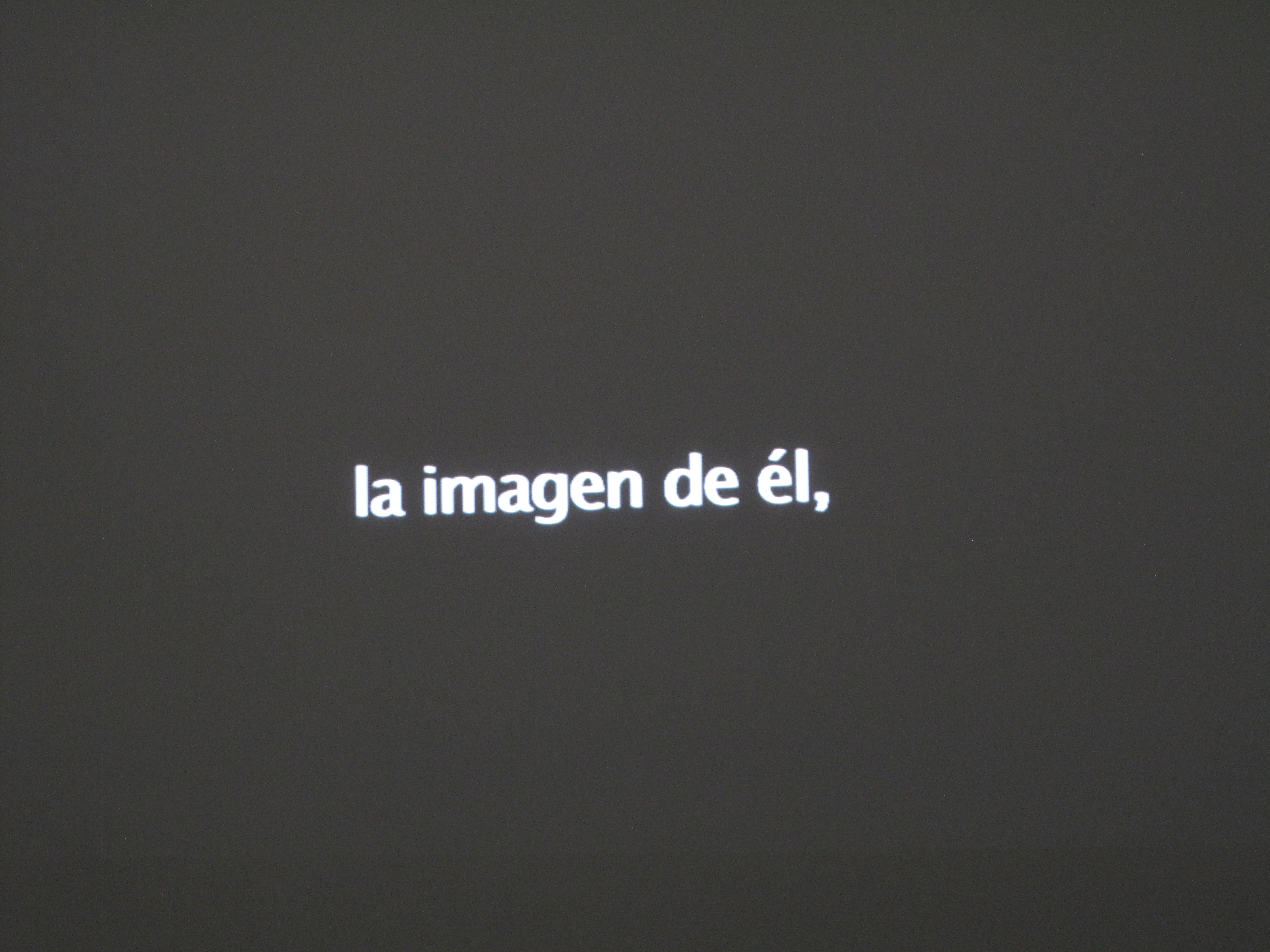 Aunque no la había visto en su momento, sabía que Kentia, había sido su película anterior y que, entre septiembre y octubre de 2012, había sido presentada en la Capella en el marco de su proyecto Primer plano de ella gritando. La particularidad principal de esta obra radicaba en la no aparición en escena de ningún actor de modo que era el espectador quien debía dar forma a un personaje a partir de los subtítulos que aparecían. Porque él estaba ausente. Dibujando el contexto de la acción a partir de la palabra escrita, se podía decir que la vida de los personajes era puramente subjetiva, distinta para cada espectador y con una narración que no se correspondía en nada a ninguna imagen mental prefijada. Y tampoco era la película. Porque no era más que su idea.