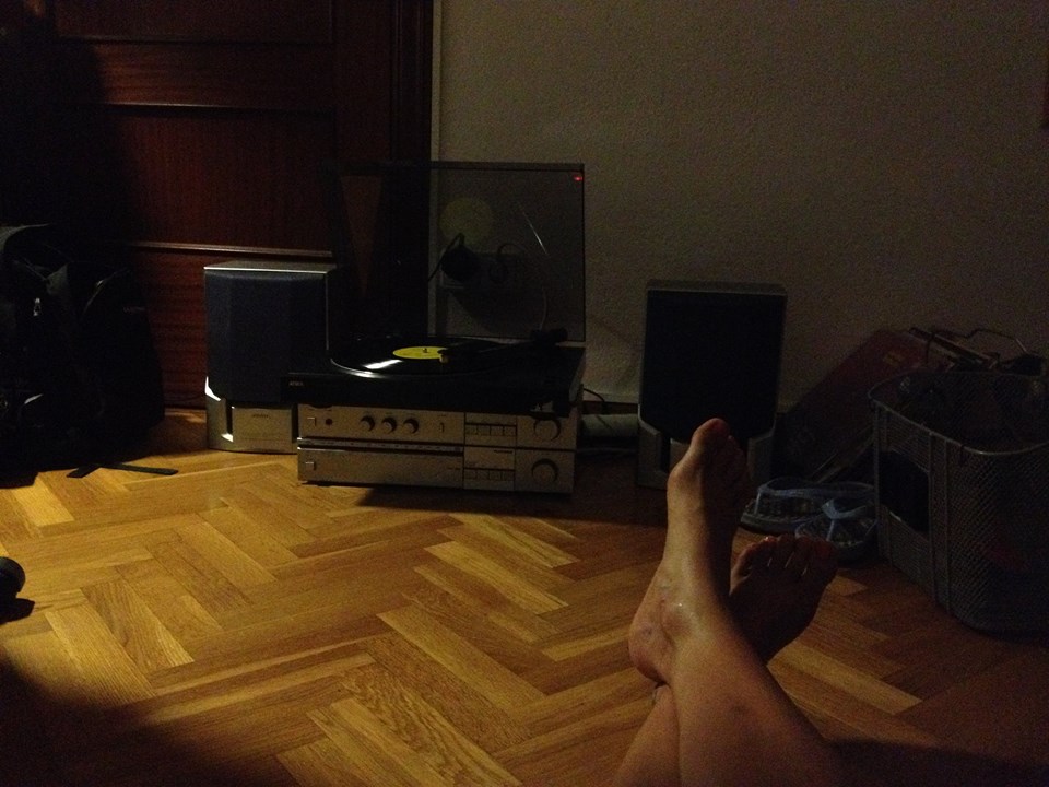 Ayer, 14 de agosto de 2014, estuve en la segunda de las sesiones de escucha en mi cuarto organizadas por Laura Llaneli en la habitación del piso que comparte en el barrio barcelonés del Raval. Se trata de una iniciativa nacida después de haberse comprado un tocadiscos y darse cuenta de que la escucha o consumo de un vinilo, por mucho que sea de una media de entre quince y veinte minutos por cara, es otra muy distinta a la que, hoy en día, se nos invita para el consumo o escucha de la música. Sería, más o menos, como la diferencia que existe entre fumarse un cigarrillo de una cajetilla o hacérselo manualmente con tabaco de liar. No hay duda de que, en la manera de entender el uso y/o consumo de ambas actividades, hay algo de ritual que hace que su experiencia adquiera otro valor y, por ende, nos haga sentir más partícipes de lo que, sin darnos cuenta, podría derivar en un hábito y a partir de ahí, en rutina y quizás a partir de este momento, en una pérdida progresiva del interés hacia lo que, en su día, apareció en nuestras vidas como garante de placer, bienestar y, sobre todo, de evasión de la realidad. Y lo voy a dejar ahí, hablando así…como de manera muy general…