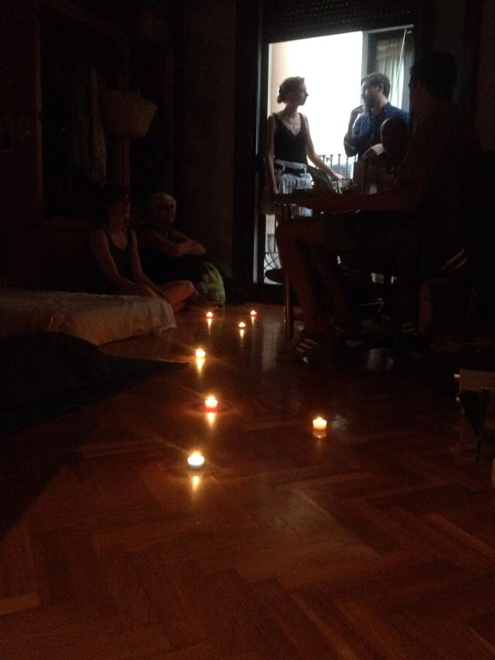 Como la cosa fue tan bien con la primera sesión que lideró Quim Packard, Laura Llaneli decidió hacer una segunda encargando la velada a Ryan Rivadeneyra. Su propuesta consistió en invitar a la audiencia a reflexionar sobre la seducción a partir de la visión, vía youtube y a modo de preámbulo, de dos secuencias de North by northwest de Alfred Hitchcock y The graduate de Mike Nichols, la preparación de unos cocktails Metropolitan -nos dijo Ryan que siempre había visto en el brandy algo de seductor-, la luz de unas velas y la explicación de una suerte de casualidades y coincidencias que, partiendo de sus padres y la música de Lyonel Richie, nos condujo hasta las puertas de lo que, para Ryan, era un must en cuanto a música de la seducción: la voz aterciopelada de la cantante británica Sade. Al margen de que el tocadiscos de Laura funcionaba demasiado rápido y tuvimos que escuchar la música a través del santo-you-tube, lo que para la mayoría de los asistentes fue poco menos que un descubrimiento, para mí fue un cúmulo de recuerdos que me transportaron a un pasado del que apenas tenía noticias por la de años que habían transcurrido. Si, lo confieso, se me apareció el dinosaurio. Ahora bien, en lugar de lamentarme sin desazón y salir de aquella habitación juvenil como alma que huye del diablo, opté por quedarme un rato más para ver cómo transcurría aquella velada amenizada por la voz de Sade, regada con Metropolitans, iluminada por la luz de unas velas, sin rumbo fijo y organizada por alguien que, como Laura, lo único que pretendía era compartir una experiencia, abrir la puerta a lo desconocido y evidenciar, desde la habitación con balcón de su piso, que hay una manera de estar en el mundo consistente en permitir que lo común de una comunidad aflore a discreción por muy conocido o extraño que sea, previsible o imprevisible, contemporáneo o extemporáneo. Porque no se trata de asistir a una cena perfectamente montada -¡para nada!- como de improvisar sobre la marcha a partir de lo que lleve cada uno de los invitados. Principalmente, sus ganas de estar. También sus ganas de participar. O, simplemente, sus ganas de descubrir. Algo. O nada.