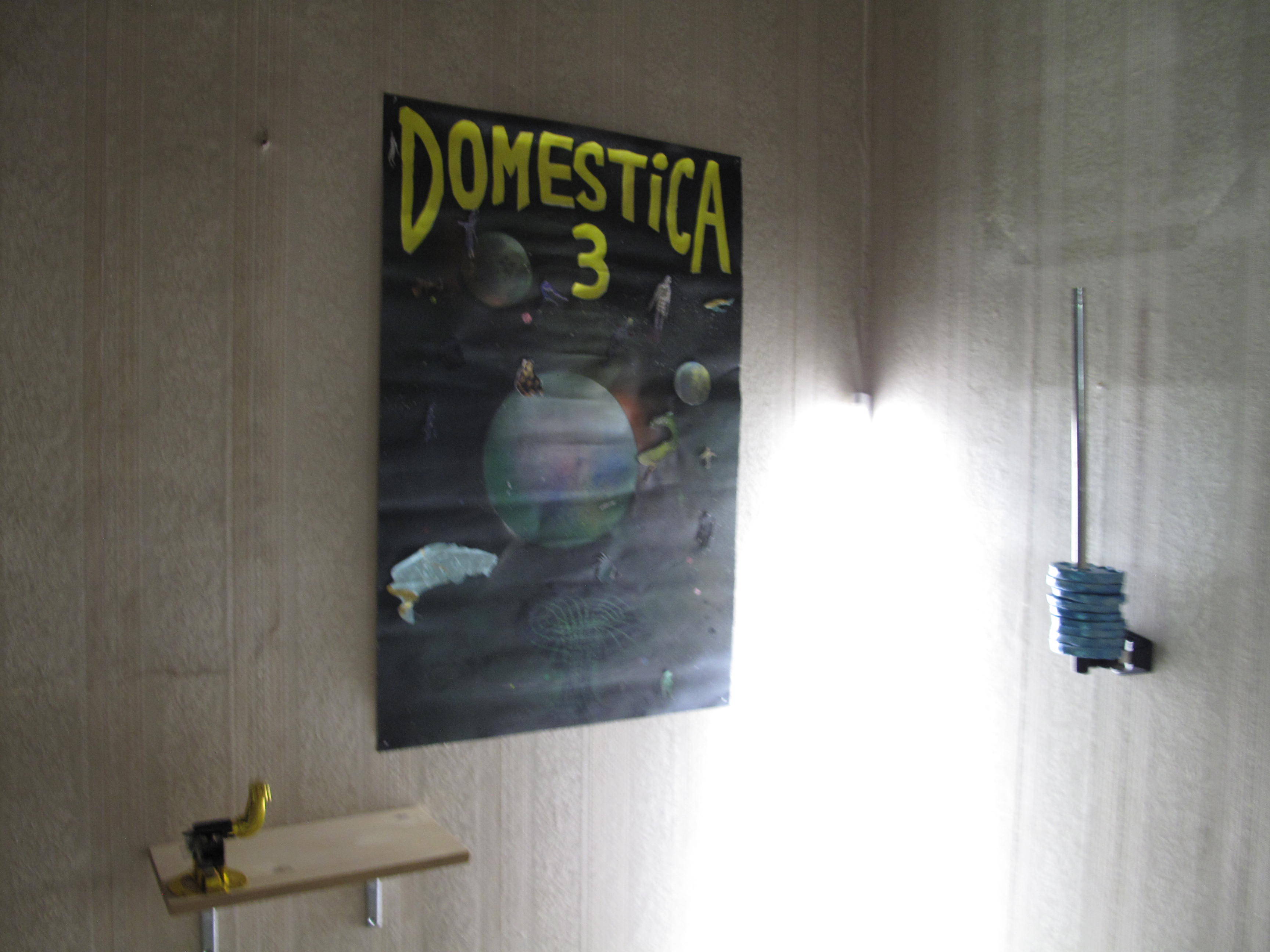 No hace mucho -el Domingo 13 de julio- por iniciativa de Antoni Hervás y Ariadna Parreu se pudo ver en un piso en desuso del ensanche barcelonés, la tercera edición de Doméstica, una suerte de macro-cajón de sastre de un sólo día de duración y con obra de cerca de cien artistas. En concreto, y según Parreu, de ciento once artistas (!!!). La cifra de participantes en Doméstica 3 tendría que ser más que suficiente como para deducir que, más que una exposición colectiva -que lo fué- la finalidad de esta iniciativa radicaba no tanto en exponer -que también lo era- como en la posibilidad de celebrar colectivamente y sin más aviso que el de las redes sociales y el boca a boca, el hecho de poder mostrar en público y de modo imprevisible el quehacer de un variadísimo número de participantes y propuestas al margen del corsé dentro del que hay que embutirse para hacerlo en espacios habituales, recurrir a los canales de difusión de siempre, soportar la pesadez de los intermediarios de turno o permanecer como un idiota al albur de falsas expectativas.