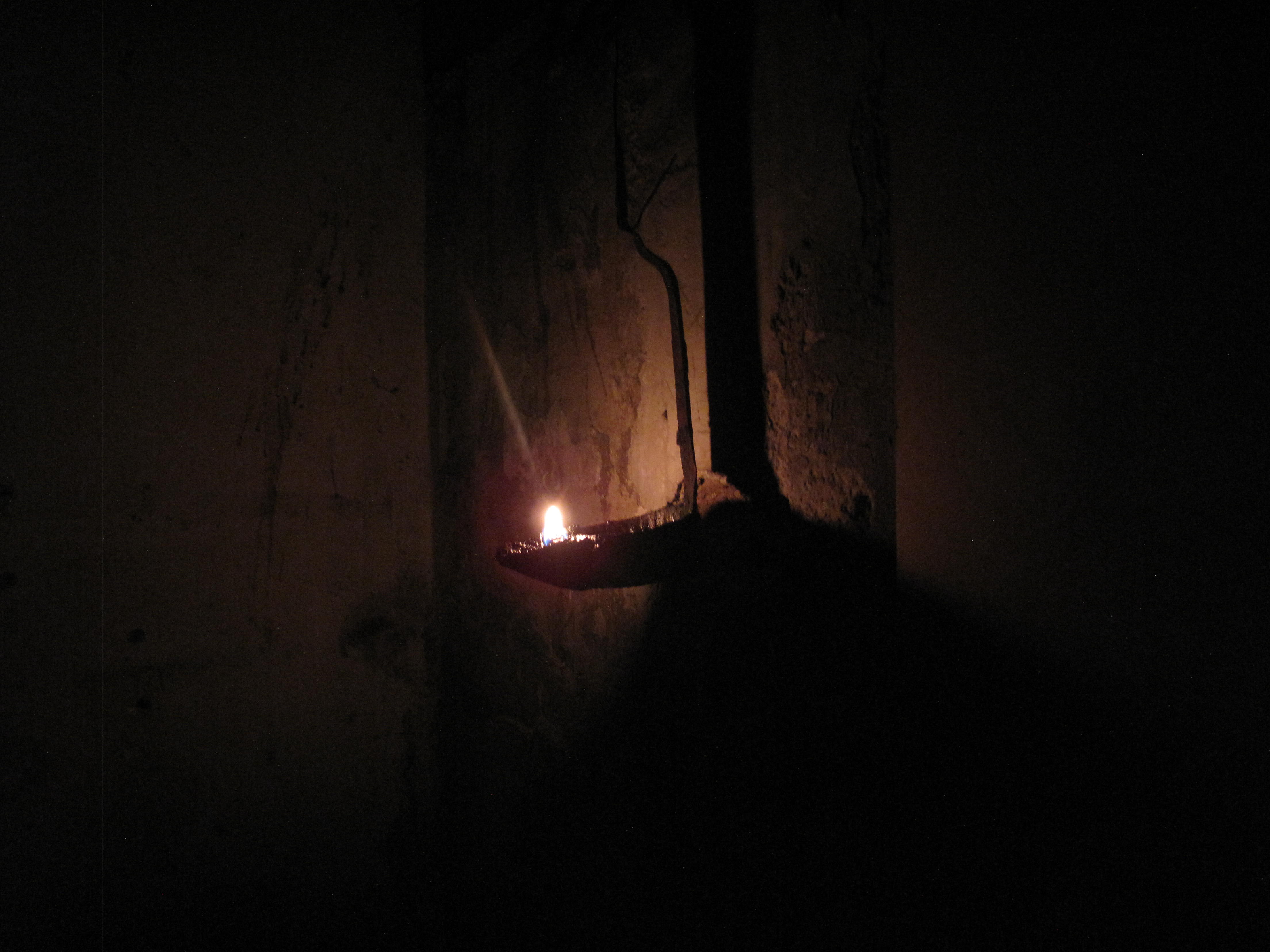 En la línea de su propuesta para la exposición Realismo hecha en la Capella en mayo de este año, lo que David propuso para esta ocasión fue apelar a la evolución de la luz a través de las estancias de la casa. Un recorrido que, desde el halo de una piedra hasta la frialdad de un led, permitió que en el trayecto se fuera inmiscuyendo la cara oculta del modernismo desde lo que serían sus orígenes hasta la variedad de sus interpretaciones sobre la superficie de unas baldosas, los moldes de tartas de silicona, el corte en el metal de unas visagras, el estampado de unos carteles de publicidad, etc. Como se informa en el folleto de la exposición, la instalación que planteó Bestué «partía de una línea de tiempo escultural que se definía por ignición, invento, grasa y aceite, obsolescencia, fluorescencia, luminiscencia e incandescencia: una historia de la humanidad, desde la antigüedad hasta nuestros días, explicada a través de la evolución y el refinamiento de la tecnología lumínica». Sinceramente bello, ¡muy bello!