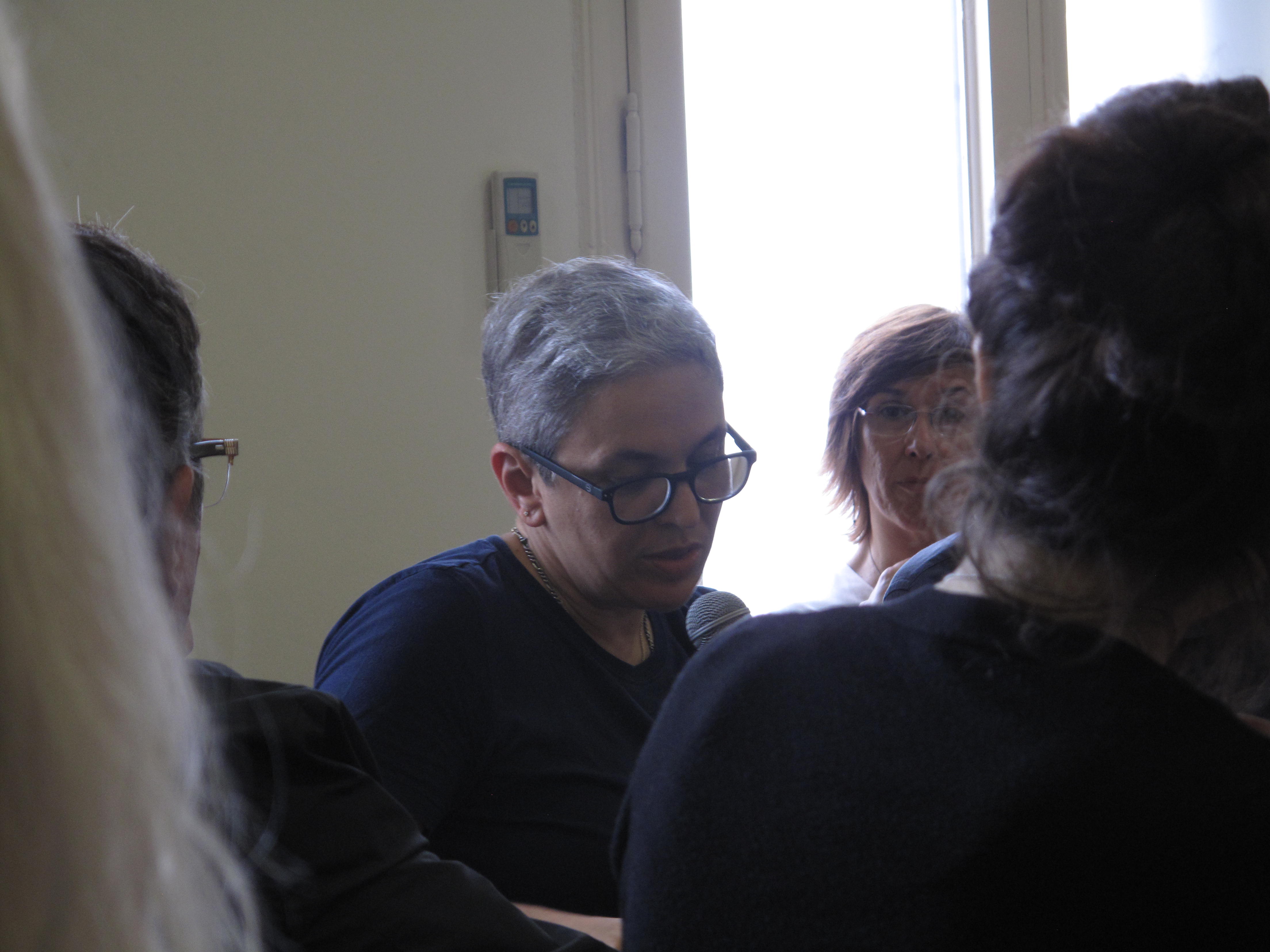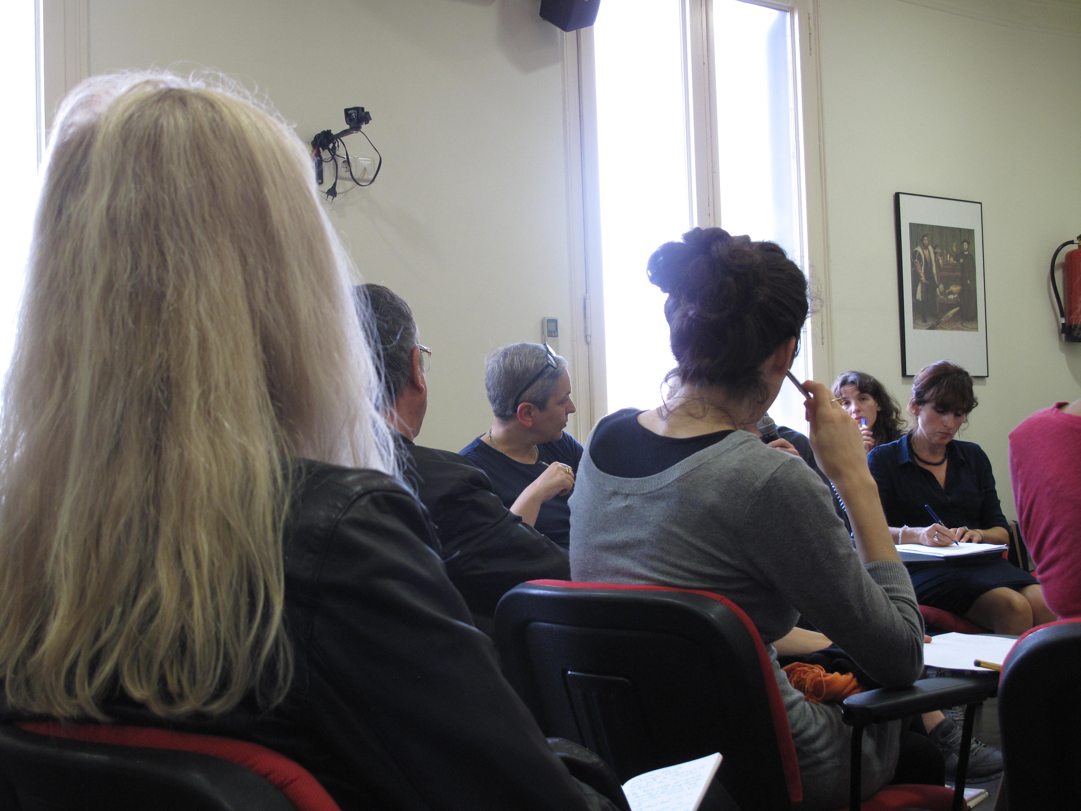 La sesión a la que asistí consistió en una conversación / debate entre un experto Joyceano (Patrick Bohan) y un Lacaniano (Xavier Esqué) y como yo no soy experto en ninguno de los dos, me quedé con el papel que desempeñaba la artista equilibrando la cuerda que une en su obra las aportaciones de Lacan y Joyce y que los lacanianos que asistieron en el debate no sólo ponderaron sino que la invitaron a continuar.