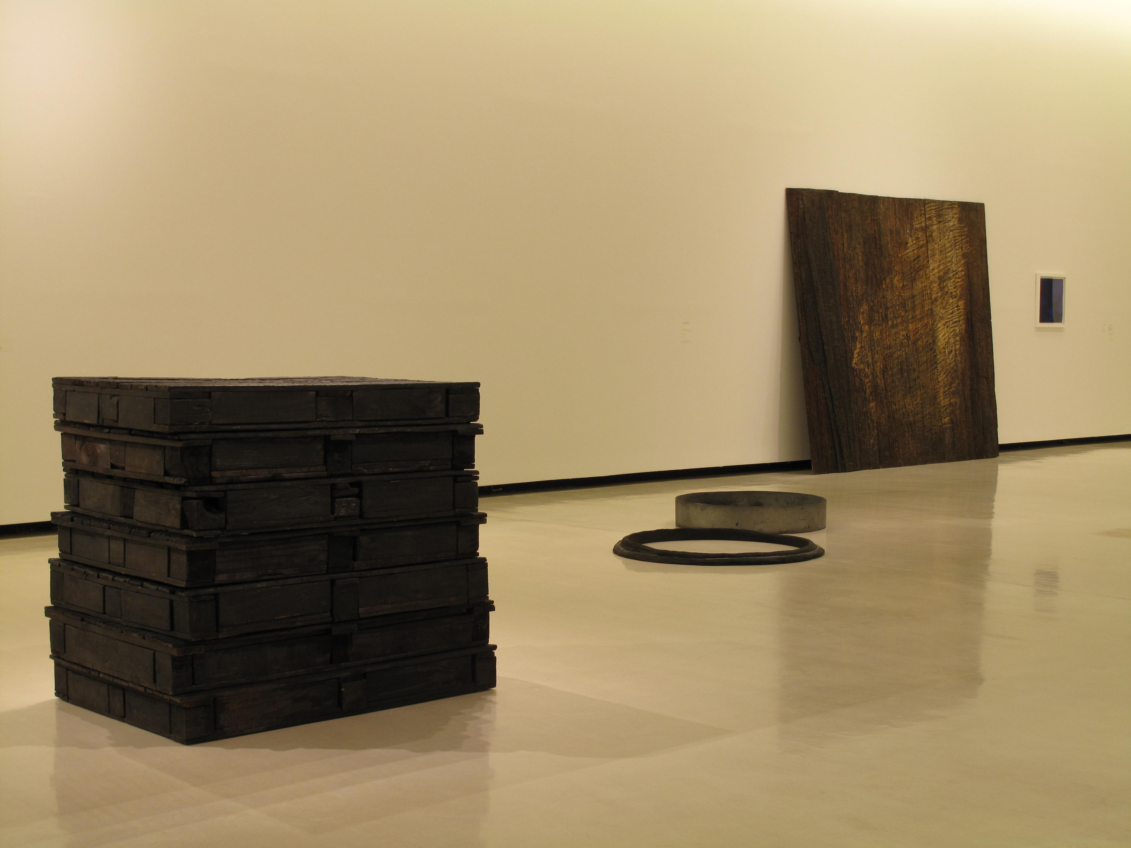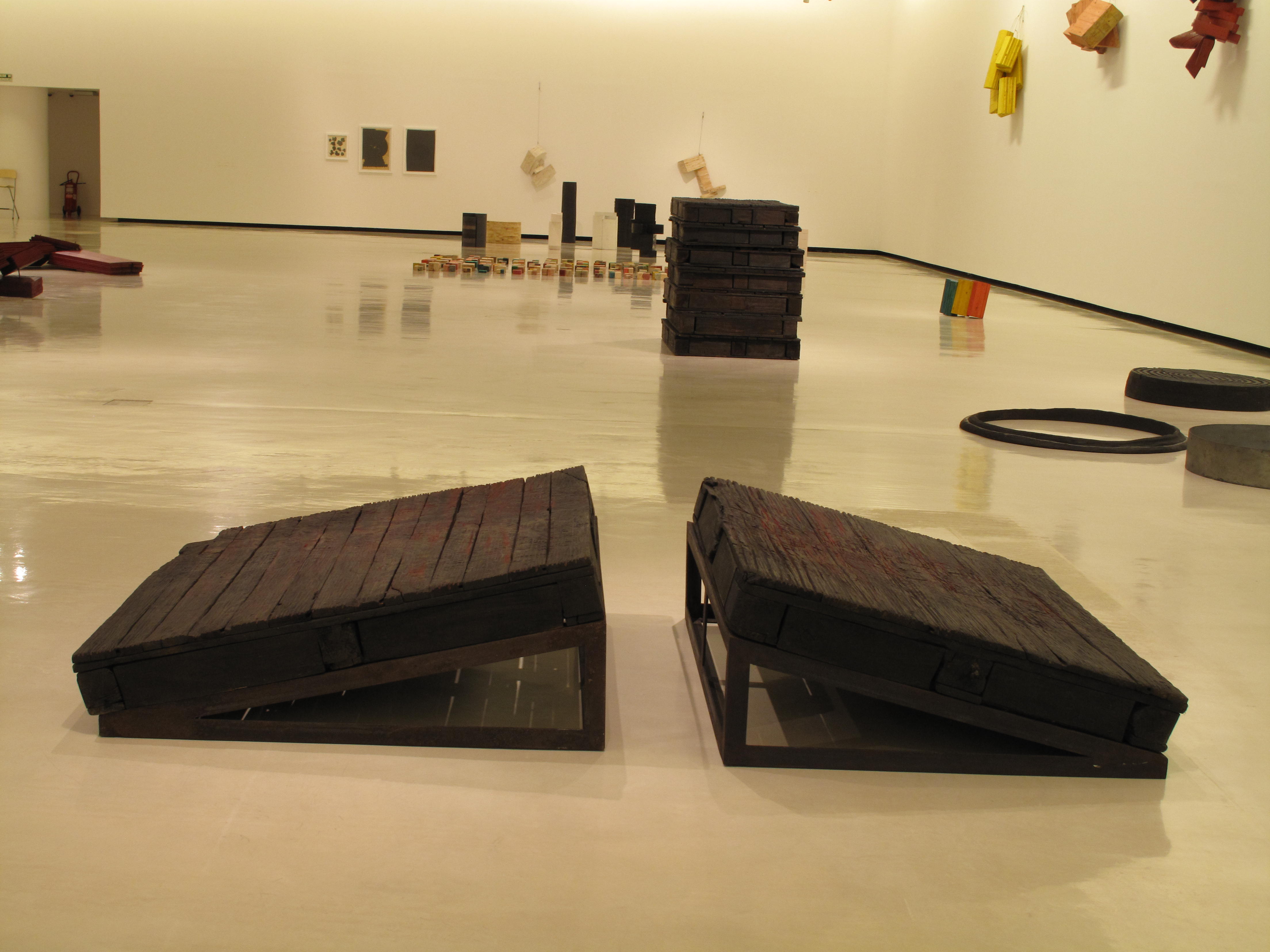 Una magnífica exposición titulada je, je… luna, comisariada por Beatriz Herráez y consistente en una selección de dibujos, esculturas e instalaciones realizadas por Fernández entre 1979 y 1997, año en que, según la hoja de sala, empieza un largo periodo de inactividad artística en la vida de esta artista burgalesa. La exposición se inicia con obras pertenecientes a la «empresa artística» CVA (comité de vigilancia artística) creada por Fernández en 1979 junto a Juan Luis Moraza para reflexionar «en torno a los mecanismos de presentación y recepción de las obras, la institución o el sistema del arte contemporáneo». Tras esta introducción que, a modo de recuperación histórica, se desplegaba en las vitrinas de una primera sala reforzando ese aspecto de investigación archivística que tan bien resulta para la presentación de ciertos trabajos artísticos, se pasaba a las grandes salas del inmenso espacio de la Alhóndiga frente a la mirada de las imponentes series escultóricas que, de forma individual, llevó a cabo María Luisa Fernández combinando, con austeridad y maestría, aportaciones sumamente personales con lenguajes propios del «post conceptual, el minimalismo o elementos procedentes de los cruces entre los constructivismos y la tradición de la escultura en el País Vasco, lugar de formación de la artista».