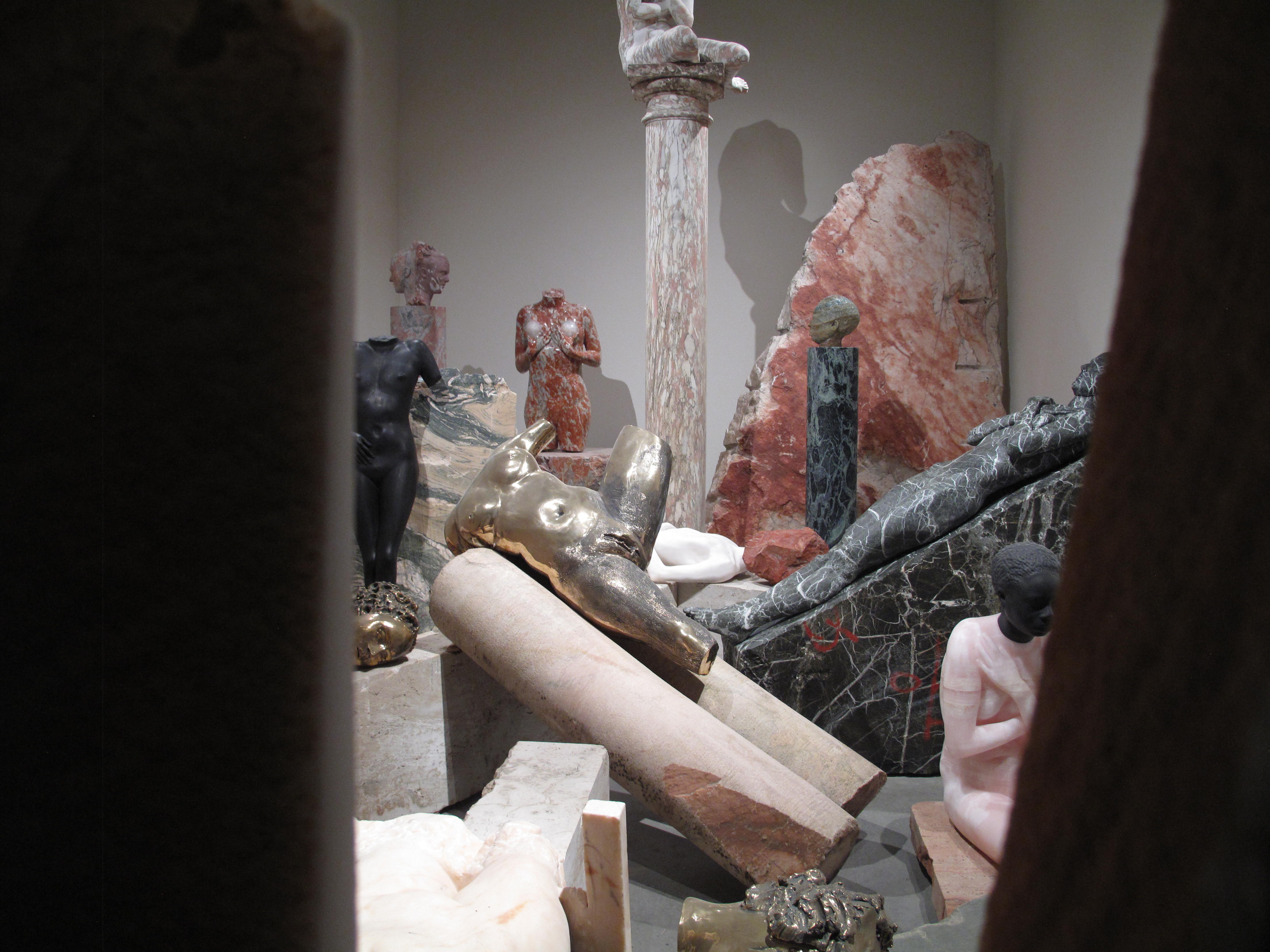 Formada por cerca de 180 obras ordenadas en base a unos diálogos a los que el público podía intervenir intentando comprender el idioma que hablaban y pese a que, sólo a nivel fonético, ya funcionaban de maravilla, la exposición titulada Slip of the tongue como una de las obras de Nairy Baghramian de la exposición, se me antojaba como un paseo hacia la interioridad de un personaje/artista de la mano de obras de amigos suyos, obras referenciales, obras escogidas para encontrarse entre ellas, obras de artistas que le obsesionan, obras de maestros del pasado o piezas curiosas de la colección del artista. Si con todos estos ingredientes una opción hubiera sido triturarlo todo en la thermomix hasta obtener una crema de calidad excelsa, lo que hizo Dahn Vo fue racionar y racionalizar su uso, hacer con ellos distintos grupos por afinidad y preparar un banquete de infinitas sensaciones de modo que fuera el espectador quien escogiera los platos que se ajustaran a su dieta. Debo confesar que lo que acabo de decir, si fuera cierto en lugar de metáfora, del empacho que hubiera cogido hubiera terminado mi estancia en Venecia en el ospedale de San Camilo.