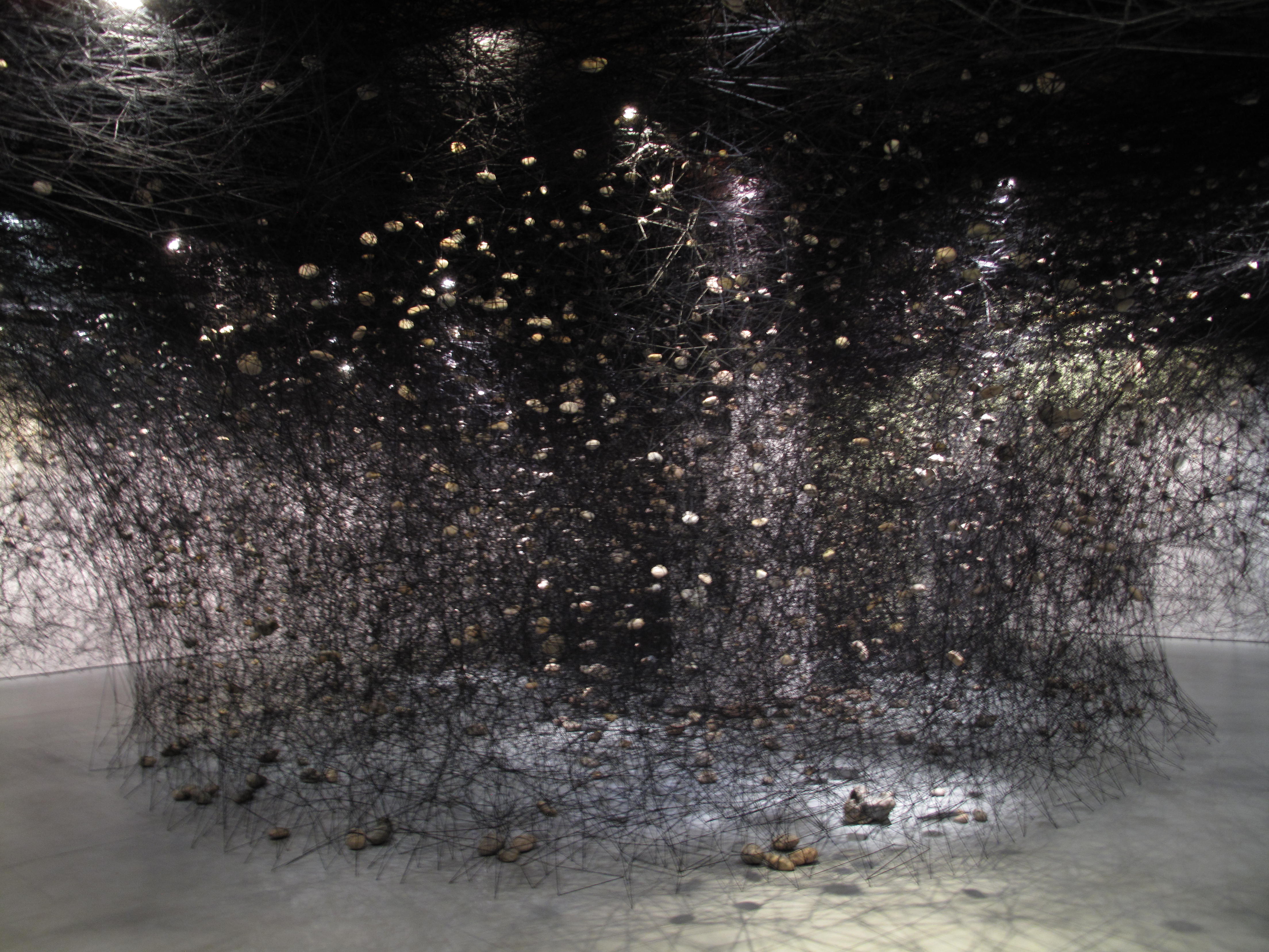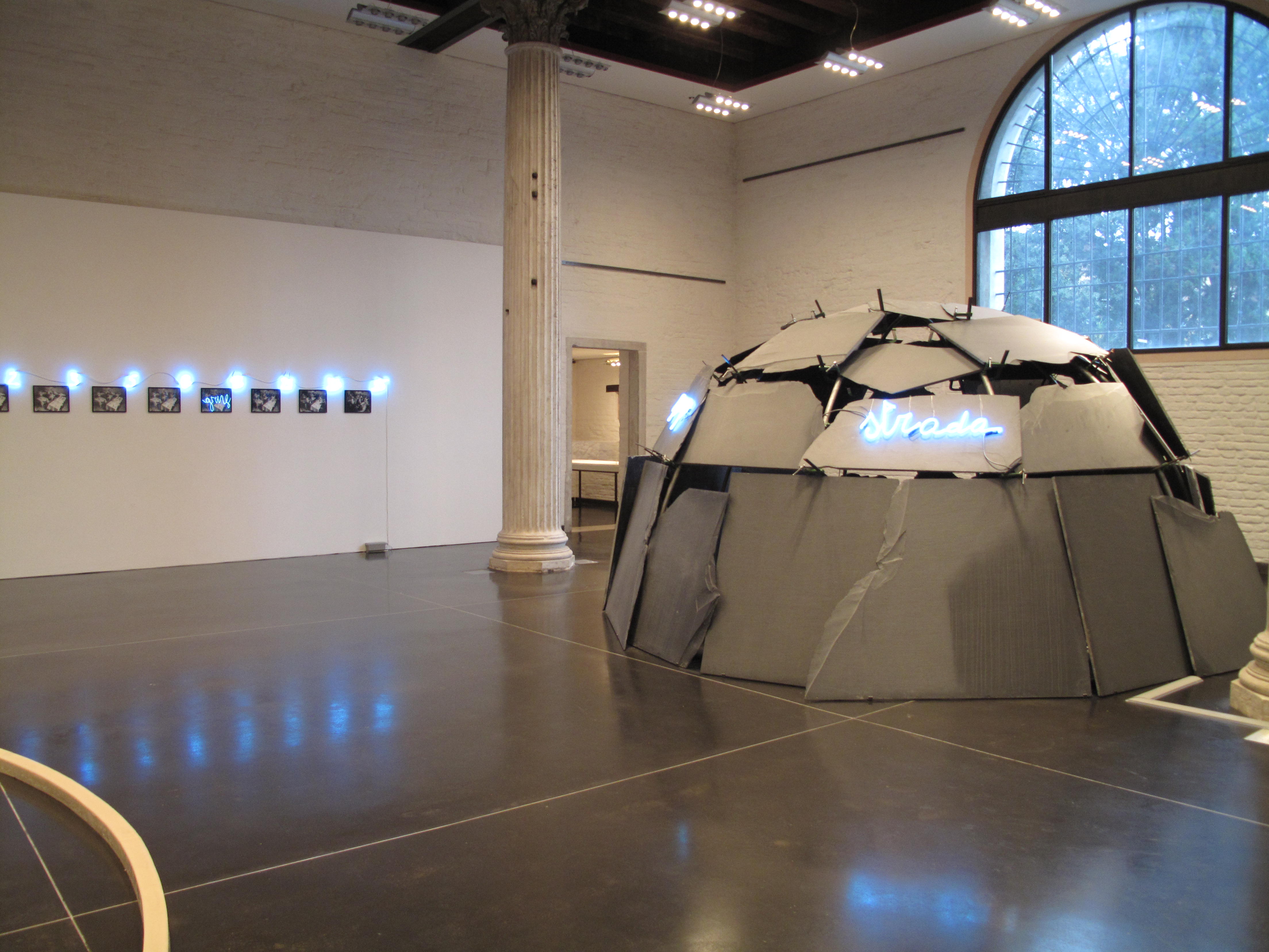 Ya que estaba cerca del hotel donde me alojaba, inicié mi ruta alternativa visitando la Città Irreale de Mario Merz (Milano, Italia, 1925 – Torino, 2003) en la Gallerie dell’accademia, es decir, allí donde se entra cada vez que se pasa por delante con el carnet de prensa en la mano. La exposición de una de las almas del Arte Povera italiano consistía en una poética reflexión en torno a uno de los temas más recurrentes a lo largo y ancho de la producción de Merz, es decir, el espacio. Tanto en su aspecto metafísico y surreal como en su capacidad de equilibrar la naturaleza y la cultura, la tradición y la innovación, lo natural y lo artificial. Concebido a la manera de un itinerario que, partiendo de los objetos y materiales cotidianos ensamblados con neón, concluía con la idea de hábitat implícita en sus iglús y su extensión en la dimensión del espacio colectivo, la exposición, además, exploraba la relación del espacio con la arquitectura y la ciudad en una perspectiva cosmológica y natural, biológica y generativa.