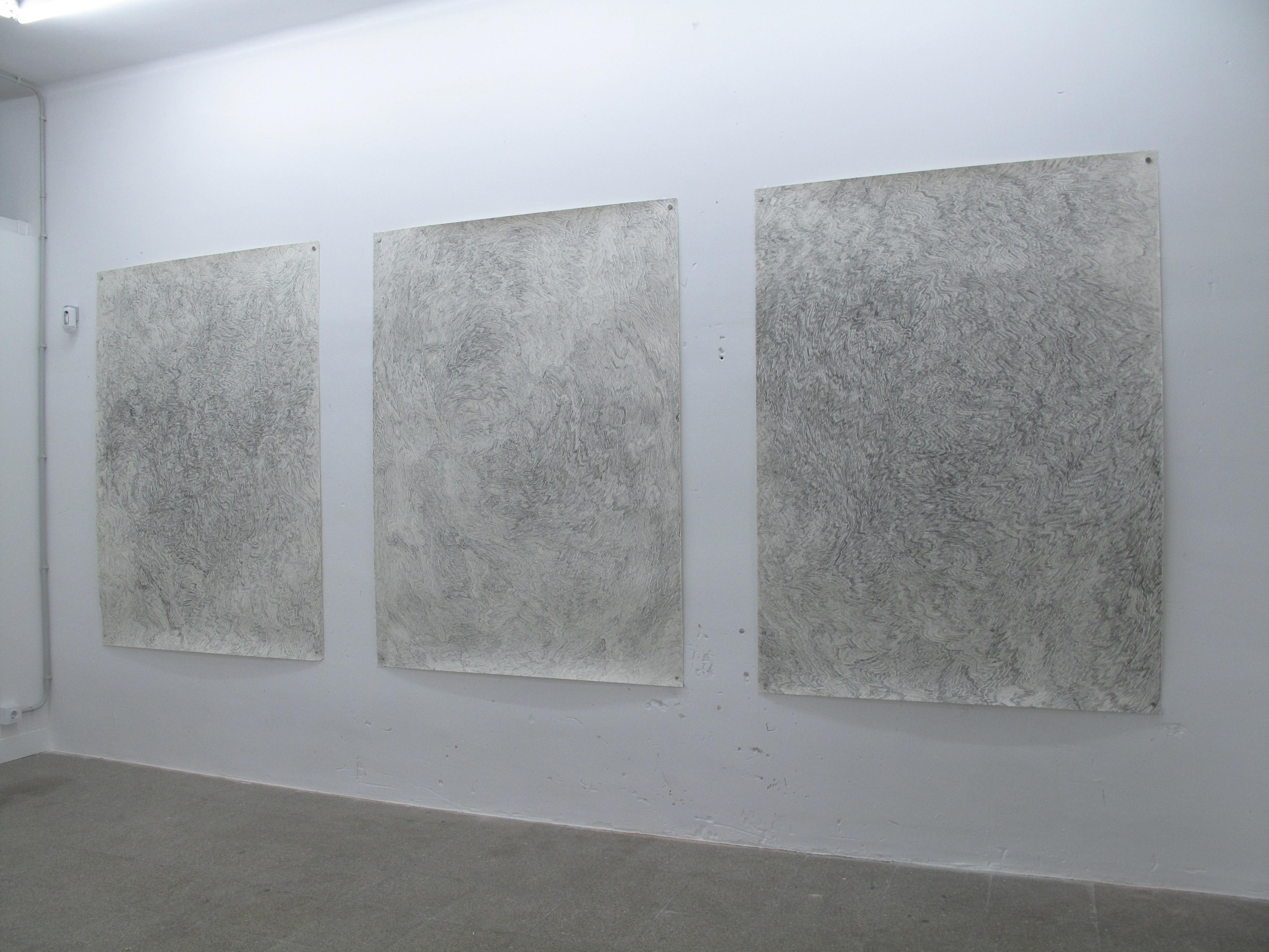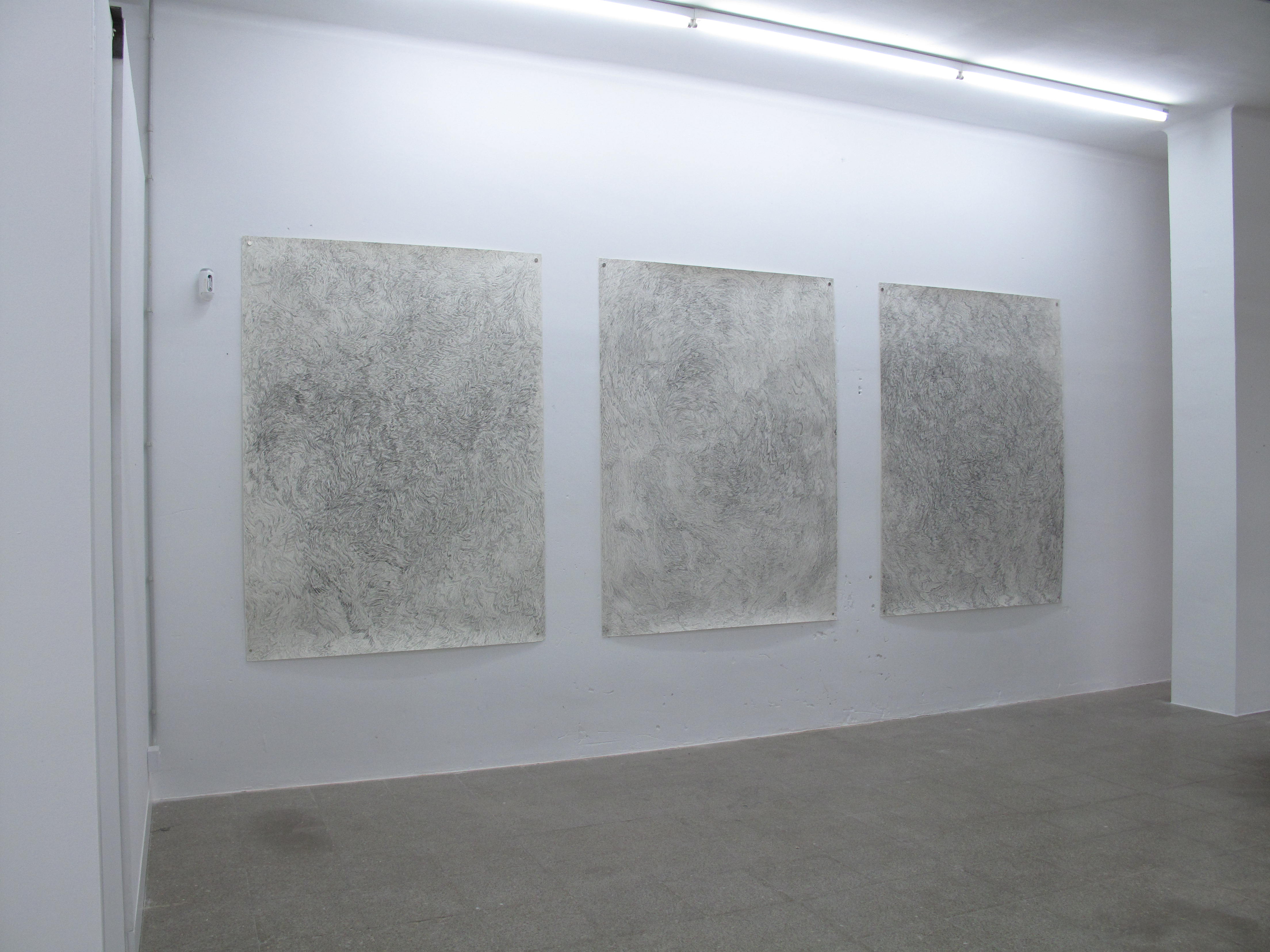 Debo confesar que, de sus dibujos, me sorprendió casi todo. Pero si algo debiera señalar hablaría del modo en que, en su empeño por conseguir lo que se le resistía -¡quién sabe!, quizás una imagen- la artista insistía en la idea de hacer un dibujo repitiendo el rastro de su mano sobre superficies de todo tipo y bajo el influjo de la orientación, la gravedad, el azar, el impulso, la cadencia, la entonación, la resonancia, la expansión, el extrañamiento, en suma, su cuerpo. El mismo que camina. Ese cuerpo de cuyo trazo deja constancia en un políptico de paseos realizados por su ciudad y sin pensar hasta dónde llegaría.