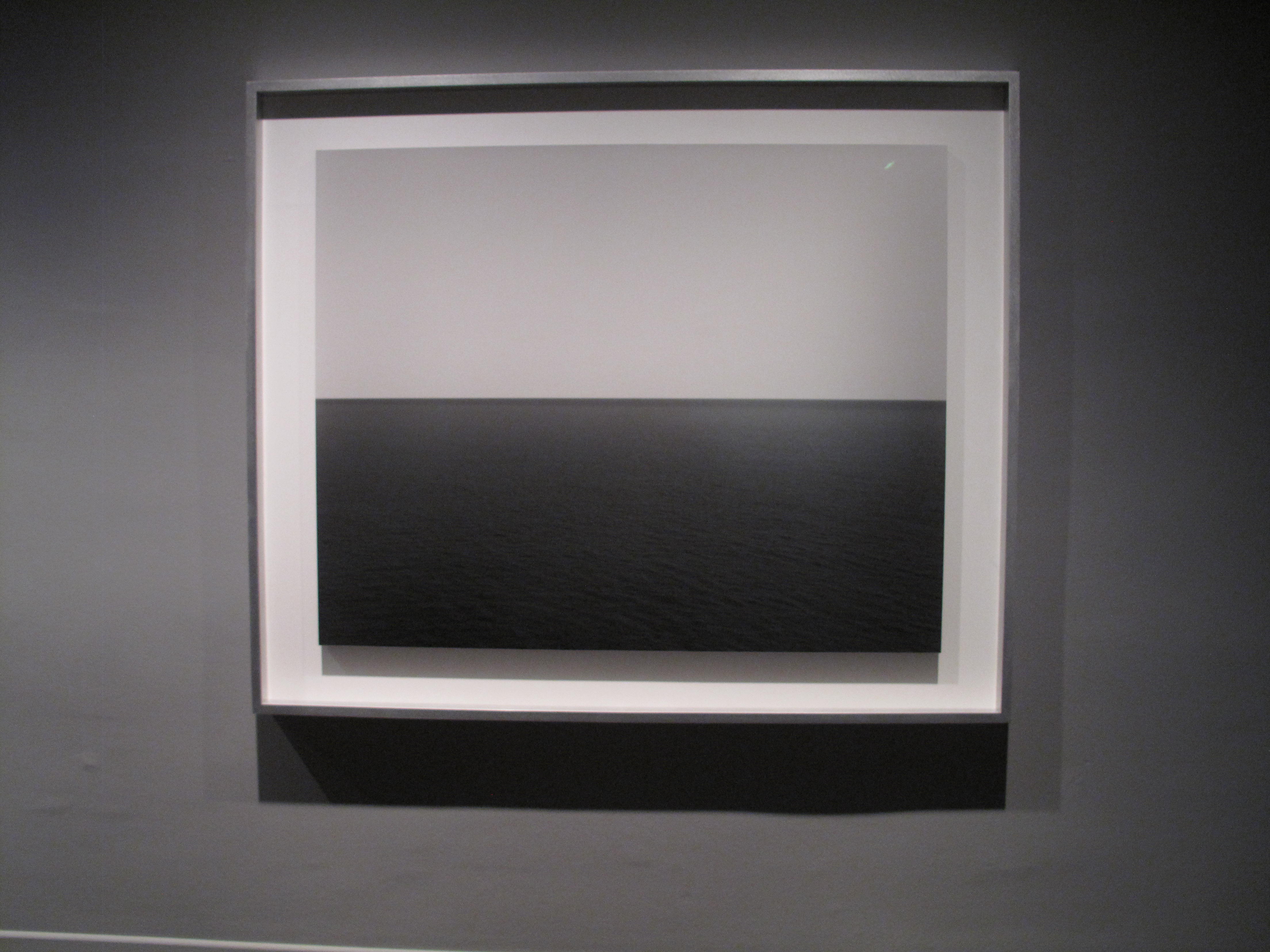Tres años después de aquella exposición recuerdo haber visto en la galería Joan Prats de Barcelona otra exposición, esta vez sólo de Hiroshi Sugimoto, centrada exclusivamente en su serie de los Seascapes o paisajes marinos. Denotando, como en la serie de los Dioramas ,un gusto exquisito en el uso del blanco y negro y la posibilidad de realzar y socavar la ilusión de realidad o su tendencia a trabajar con objetos encontrados y situaciones dadas o el uso creativo de las posibilidades técnicas de la cámara o la convicción de que la cámara es una «máquina del tiempo» capaz de transportarnos a momentos lejanos del tiempo geológico y la historia humana, su serie de los mares es algo que se debe ver para entender lo que es la cámara para Hiroshi Sugimoto, es decir, el mejor aparato para representar el sentido del tiempo. Un tiempo que, en el conjunto de su obra, parece suspendido mientras nosotros lo contemplamos.