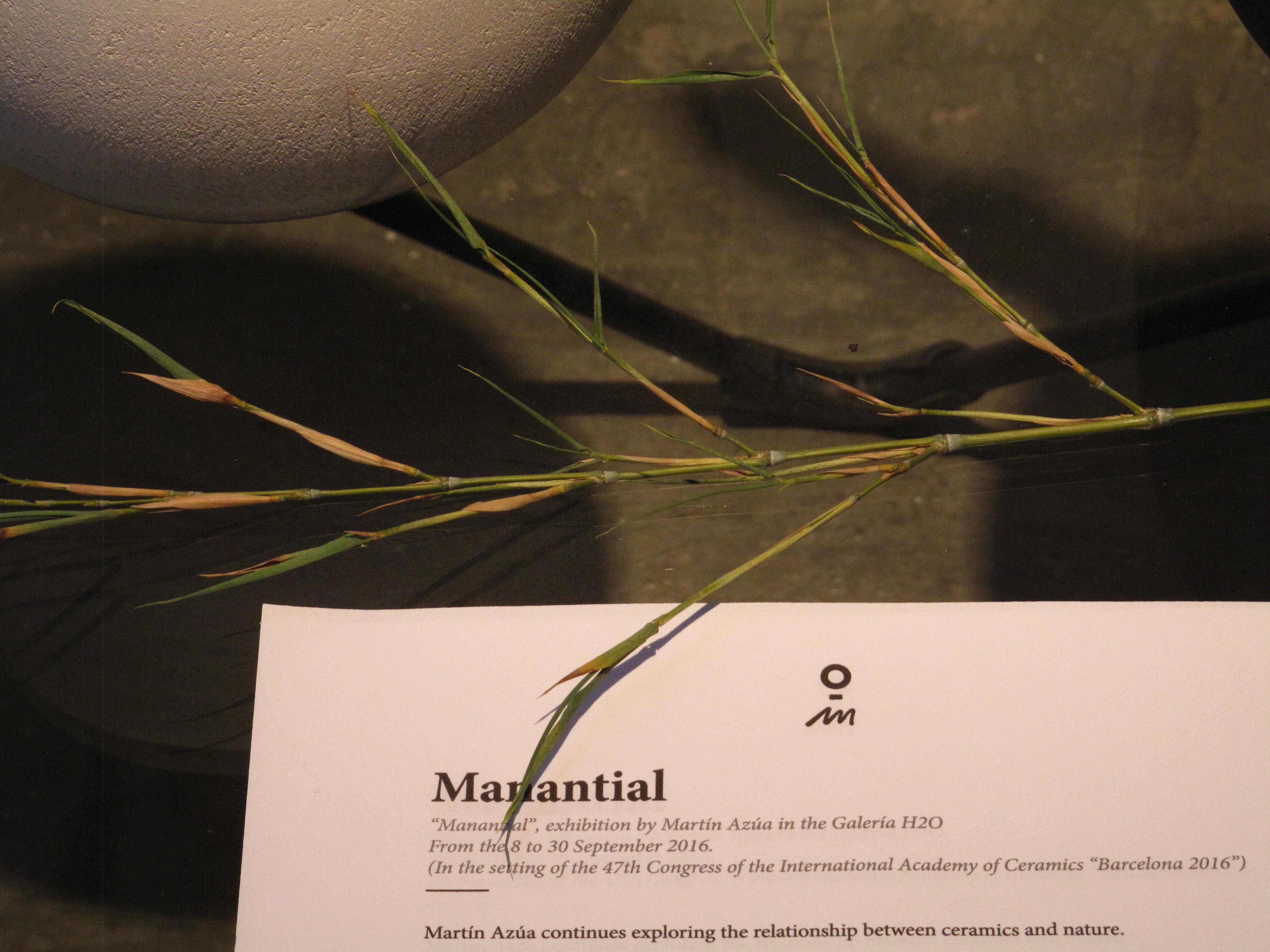 Articulado en torno al tema de La Cerámica en la Arquitectura y el Espacio Público -entre otras razones por el papel de la cerámica durante el Modernismo, en la obra de artistas como Chillida, Miró o Lichtenstein o, en general, en la arquitectura o en la escultura- el Congreso ha programado una serie de actividades y exposiciones que, aunque ahora no vamos a detallar sí vamos a decir que a la vez que ha despertado una cierta curiosidad también ha deparado alguna que otra alegría. Como por ejemplo, la proyectada por la galería H2O, titulada Manantial y consistente en una muestra exquisita del siempre exquisito Martín Azúa.