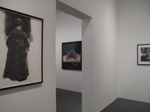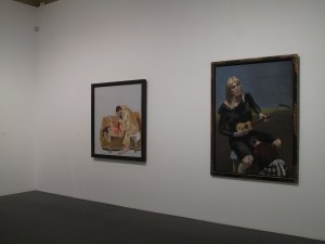 Pasar de sala en sala sorteando todo tipo de miradas para no verse salpicado por lo que, a veces, resulta hasta difícil de observar, es una experiencia a la que me vi abocado desde el momento en que puse los pies en la primera sala y me vi asaltado por un cónclave de mujeres que más que humanas se me antojaron amigas de Anarcoma. Tras esta liviana entrada y hasta el final de la exposición ya no pude reconducir ni tan siquiera mi mirada. Tampoco nada. De modo que lo que vi en las salas restantes y sin solución de continuidad fue lo que, pasando de gravados a libros y de libros a lienzos y de lienzos a acuarelas y de acuarelas a un armario habitado y de este grupo de gente atrapada a una atmósfera cada vez más densa, intensa e implacable, no consiguió sino resaltar la deuda que mantiene esta artista con una forma de entender la vida de la que no sólo penden personajes y referencias pictóricas sino también ecos literarios y musicales como de Charlotte Brontë, Benito Pérez Galdós, Shakespeare, Clarice Lispector, Martin McDonagh, Benjamin Britten, etc… es decir, personificaciones de brutalidad descarnada, fina y sin concesiones o de ese ahí-te-las-apañes-tú cada vez que nos enfrentamos a cualquiera de sus obras por aquello de nutrirnos de cosas que contar. O, mejor dicho, de modos de contar las cosas.