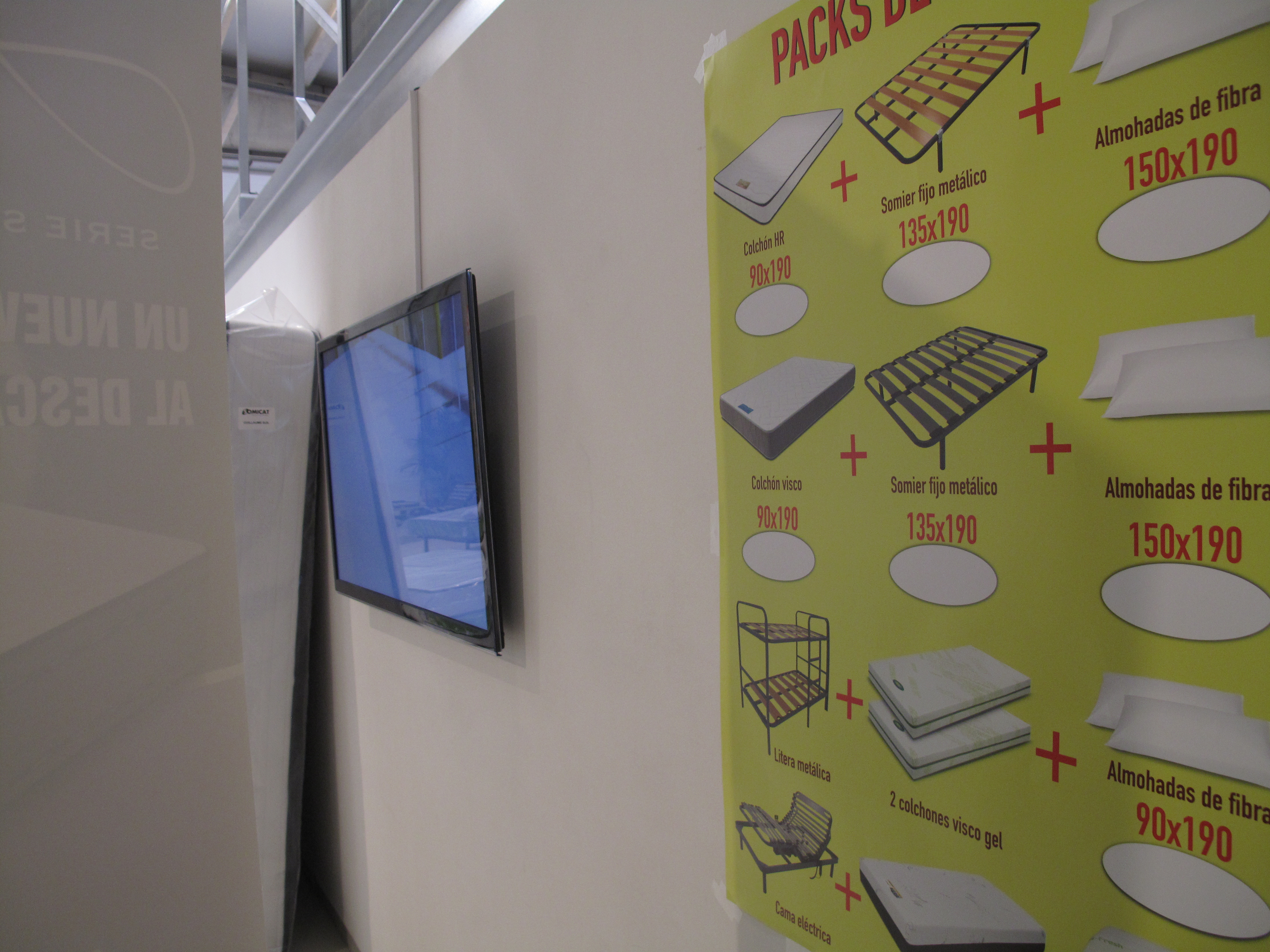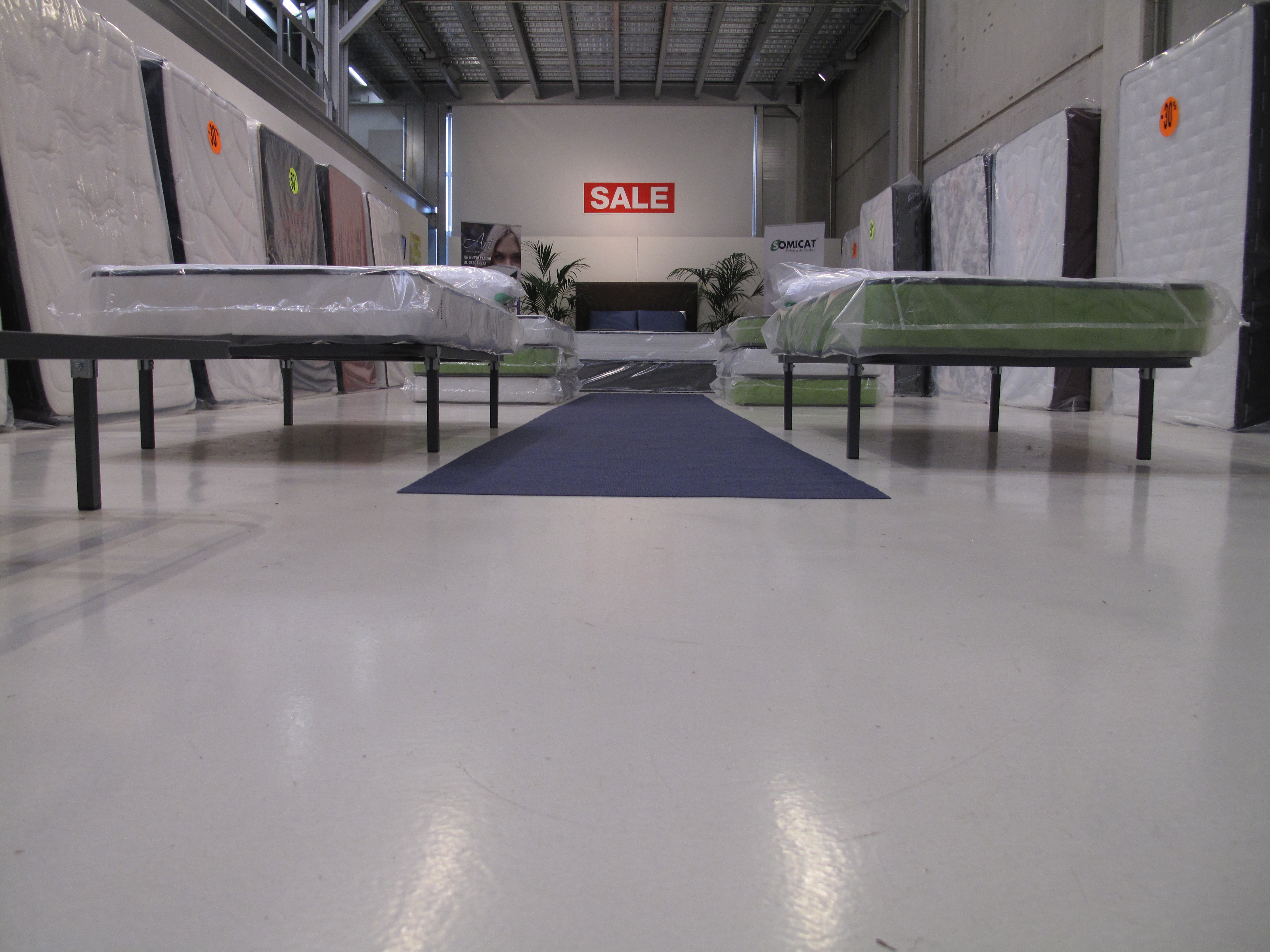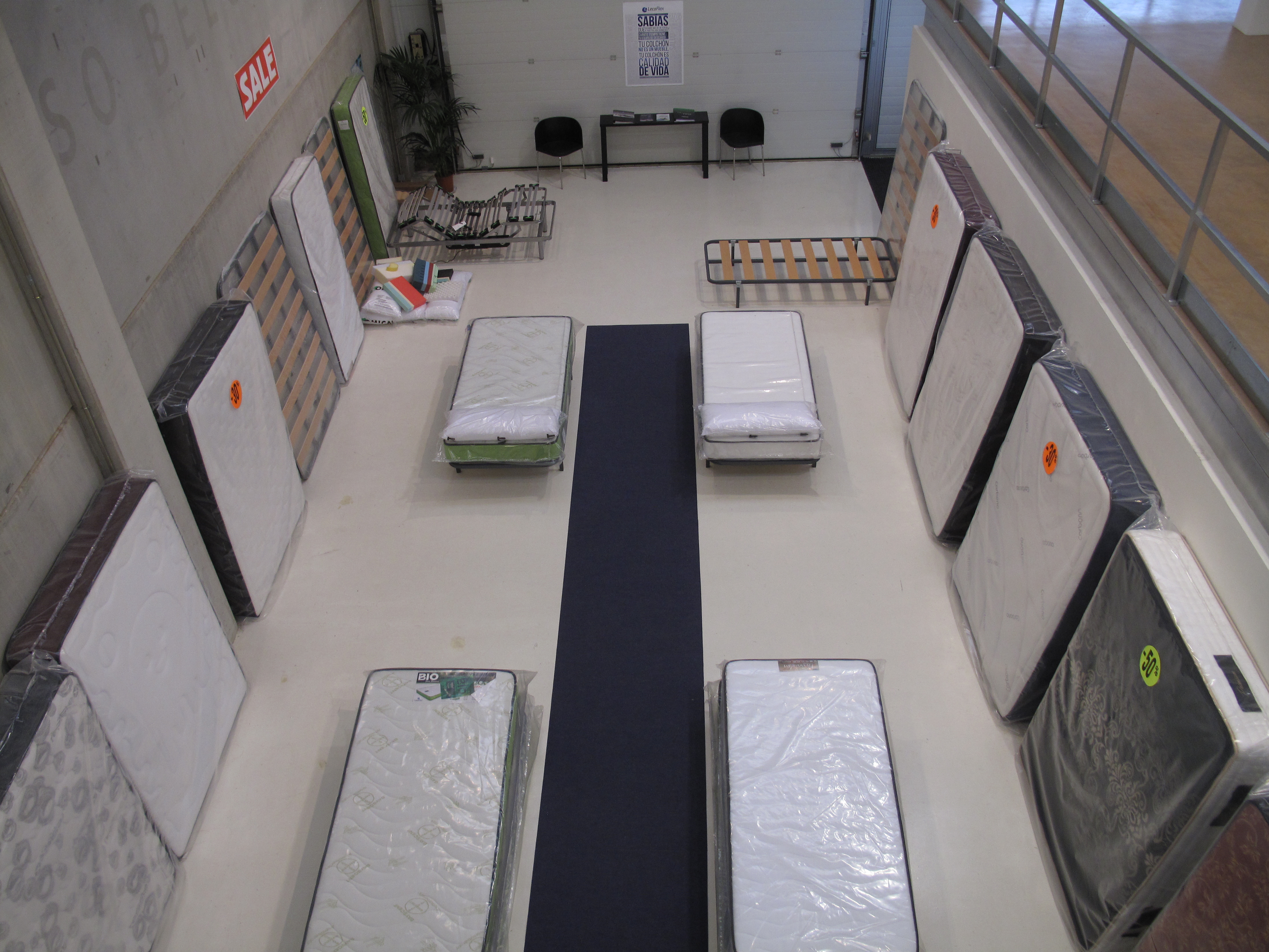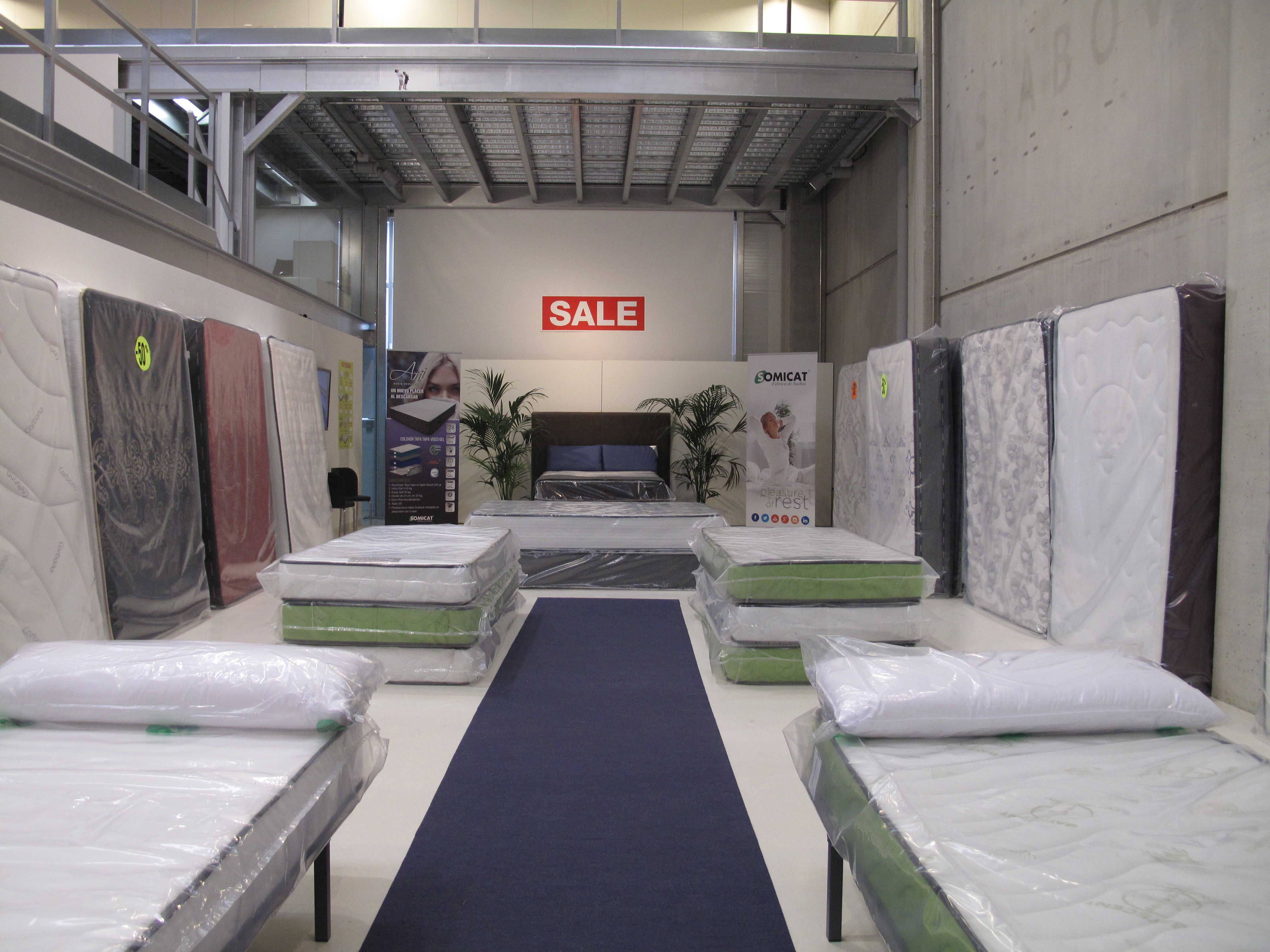 El regreso a la normalidad no significa que todo acabe sino más bien todo lo contrario. Ayer, sin ir más lejos, regresé de nuevo a ADN Platform para visitar la exposición con los responsables de la fábrica de colchones, es decir, con los responsables de la firma de la que procedía el material, la publicidad y todo lo que precisamos para reproducir tan sofisticadamente aquel decorado sumamente banal. Así como el día de la inauguración me intrigaba saber qué pensaría el sector del arte al ver que uno de sus espacios había sido ocupado por un almacén de colchones, lo que más me intrigaba de la visita con sus fabricantes era saber qué pensaban los industriales al ver sus productos expuestos -nunca mejor dicho- de otra manera y en otro contexto. Y la verdad es que alucinaron bastante: junto a la dificultad de entender que «su producto» se había convertido en obra de arte y que ya no eran los colchones que fabricaban y vendían sinó otra cosa que se les escapaba, se unía el hecho de que estaban expuestos de un modo que les resultaba familiar aunque en verdad no lo fuera tanto.