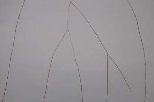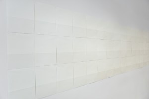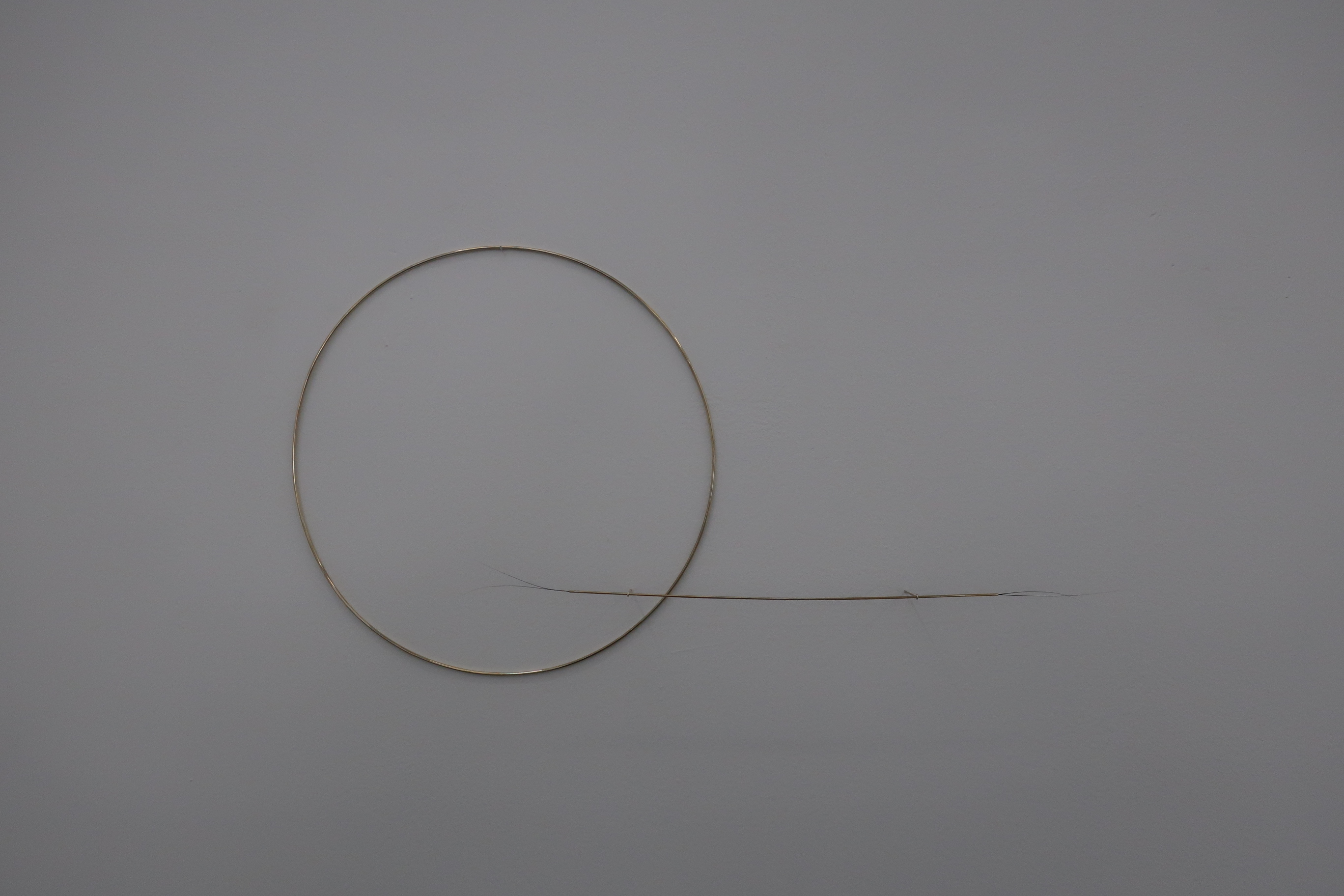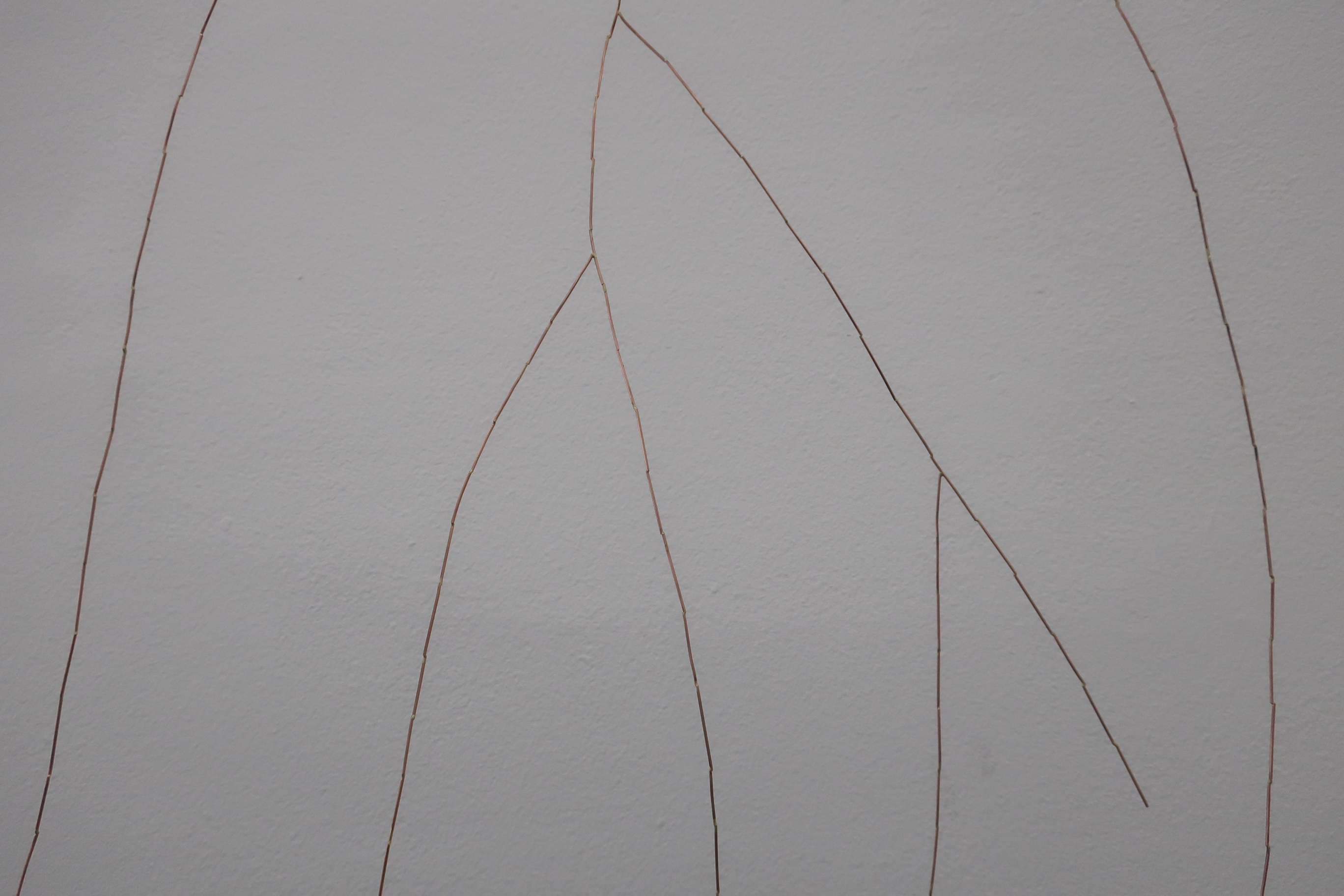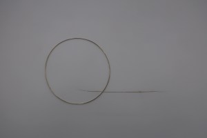 En el marco de una exposición cuya sutileza ralla lo invisible pero que tan pronto se percibe lo que muestra no se puede olvidar, Joana Escoval (Lisboa, 1982) expone su obra en la galería Bombón Projects de Barcelona hasta el próximo 1 de junio. Si me preguntaran qué me atrae de lo que construye esta artista diría que son varias cosas: su manera de referirse al equilibrio haciendo uso de la inestabilidad, el modo de apelar a la ingravidez desde un anclaje en el espacio, la voz con que expresa la ligereza de su obra, el diálogo que establece entre lo sólido y una vibración, su forma tan delicada de trabajar con el material, su modo tan singular de vestir la invisibilidad, etc. Ahora bien, si algo me atrae especialmente de la obra de Joana Escoval es el modo en que invita a ser descubierta. Es decir, como quien hace algo prohibido, un acto íntimo, en silencio, como quien aparece en escena cuando no debería. Al margen de evidenciar sus singulares armas de seducción, lo que me cautiva del trabajo de Joana Escoval es cómo su mirada coquetea con el espacio, la forma en que su obra acaricia una pared, el modo en que la pared deviene epidermis…. la forma en que su obra se adapta al espacio. Como una joya lo hace a un cuerpo.