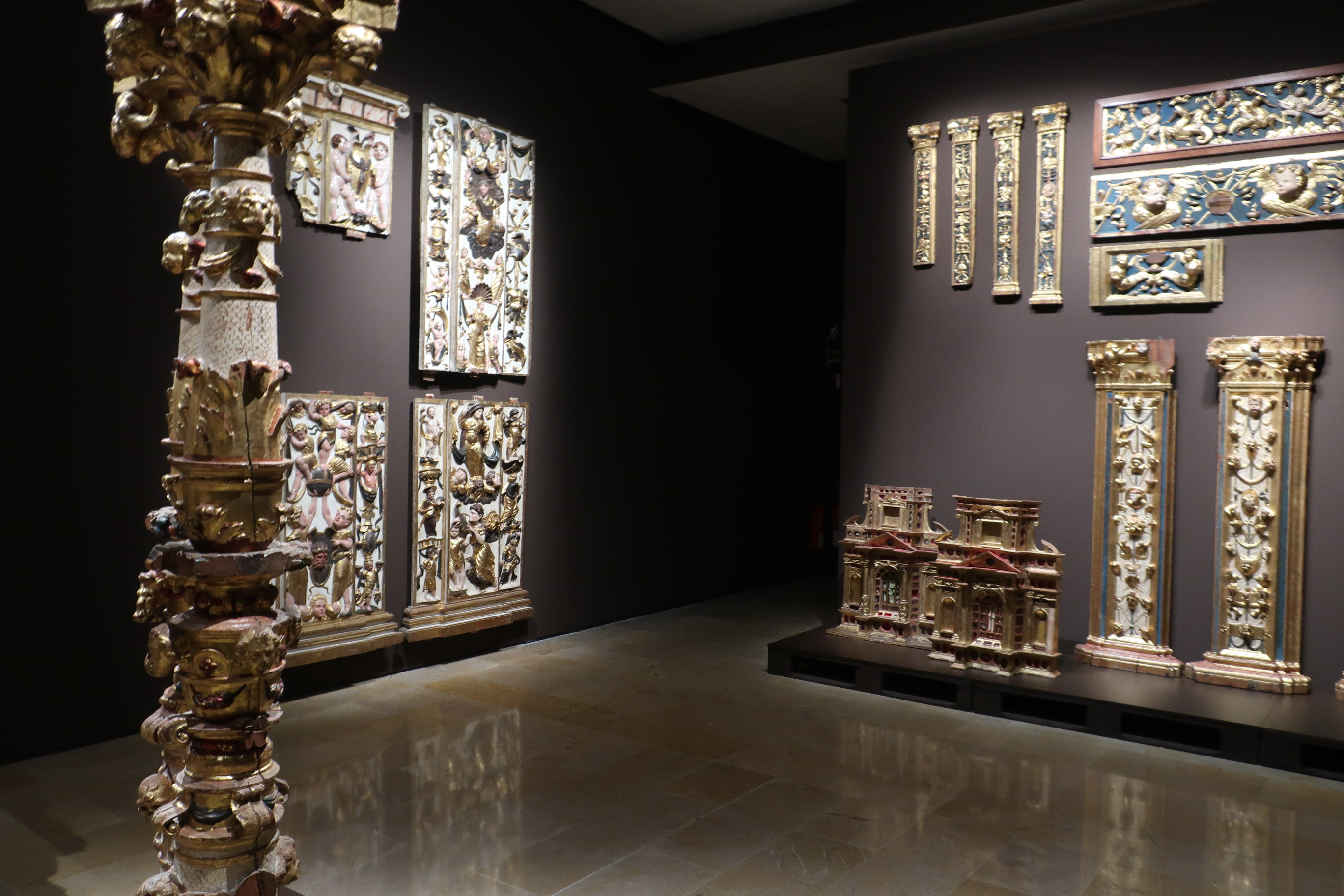 La siguiente sala, denominada estructuras, está formada por una increíble acumulación de balaustres, columnas, traspilastras de retablos, relicarios, tableros y marcos dorados de maravillosa filigrana dispuesta para demostrar que, como ya viera Brancusi, las peanas y soportes pueden llegar a ser considerados unas maravillosas obras de arte. Se trata de unos elementos que al ser mostrados como en esta sala inducen a pensar tanto en lo que soporta como en lo que es soportado. Sólo hay que mirarlas con los ojos adecuados y no con el desprecio de quien los considera como algo superfluo.