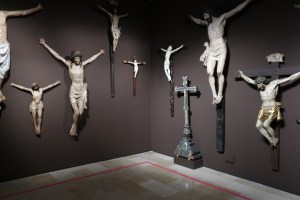 Titulada variaciones sobre un mismo tema y formada por veintidós tallas de cristos crucificados realizadas entre el s. XIV y XVIII, la sala donde se agrupan estas figuras de Cristo brinda la posibilidad de acercarse a esta imagen tan dolorosa en base al tamaño de las tallas, su policromía, los materiales utilizados o la expresividad de sus rostros. Es como si a una sala de los horrores le extirparas el terror para poder dar paso a algo más llevadero, trivial, ligero, inocuo e inofensivo. Es decir, algo ajeno a la sangre y el dolor que siempre acompaña este tipo de representaciones. Y que a mí me gustan tan poco.
