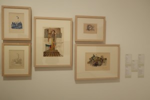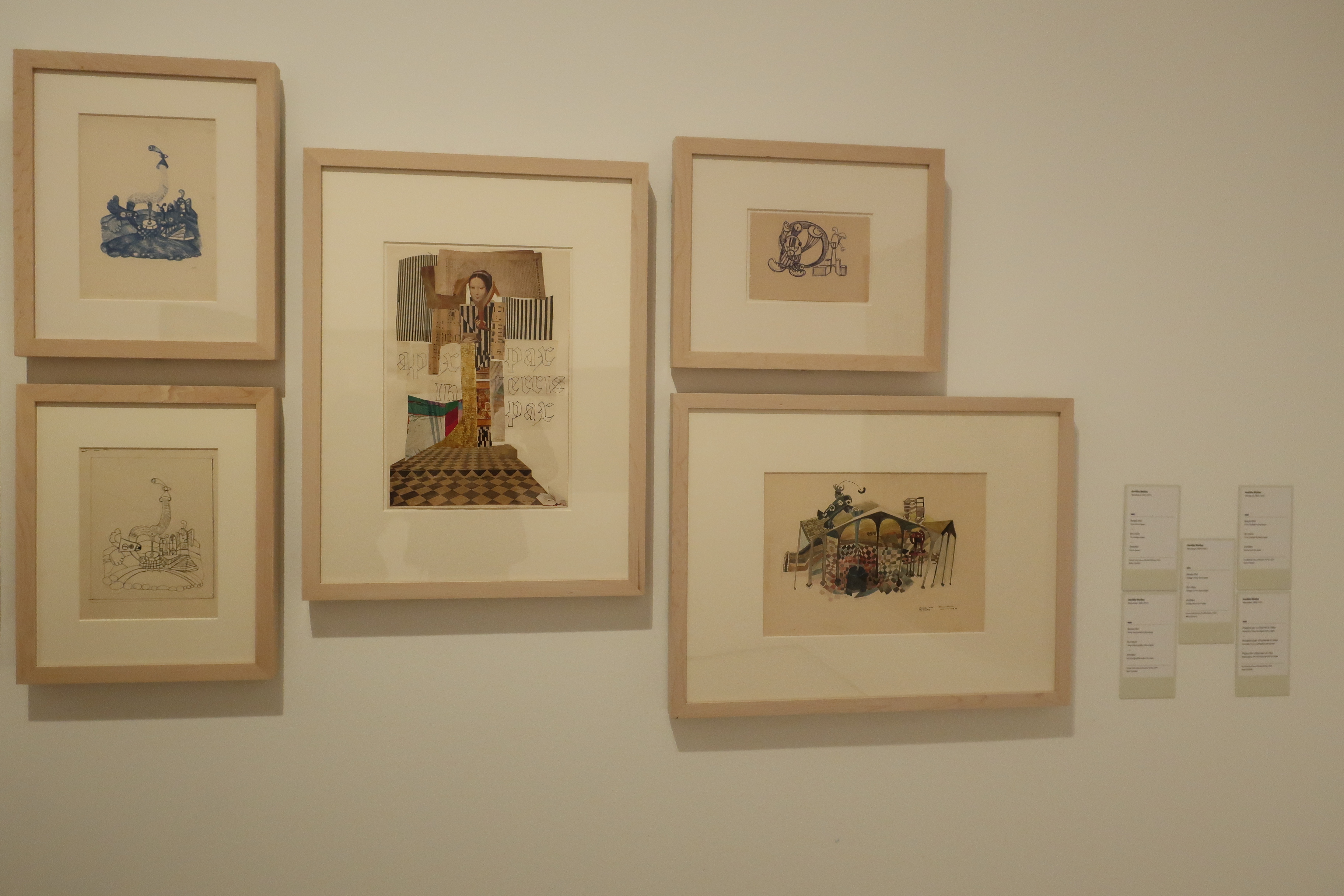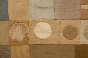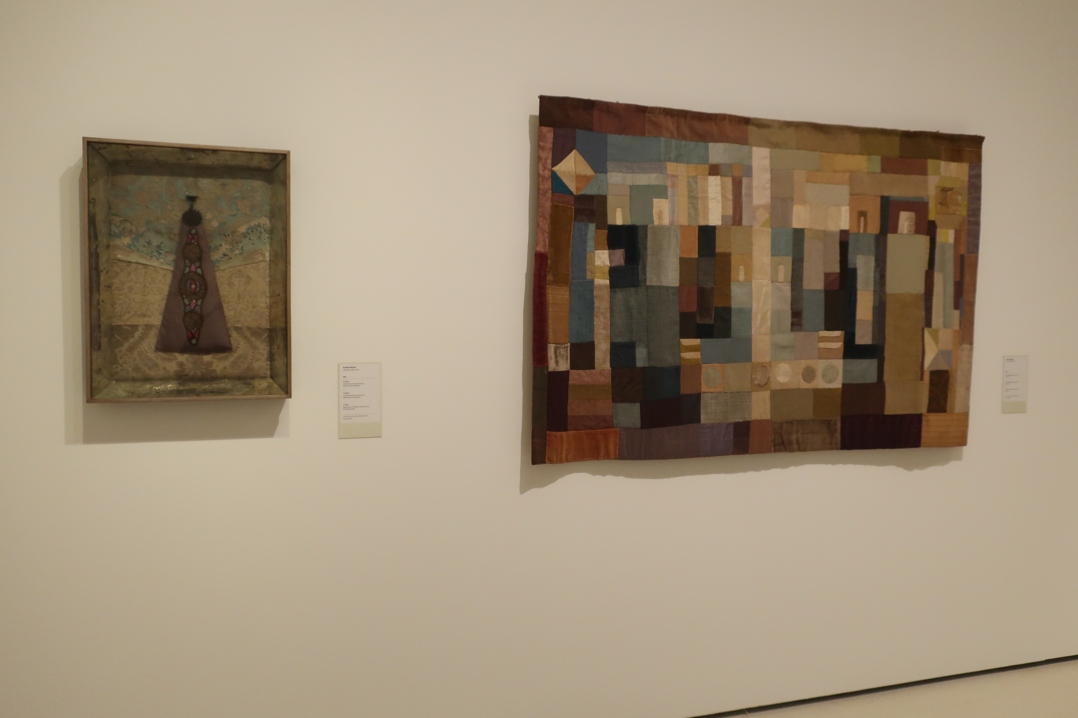 – De 1960 a 1968, época en que realiza bordados y obras en patchwork con una temática centrada principalmente en torno a temas místicos y simbólicos de corte medieval. Dos de estas obras se pueden ver en la exposición: el patchwork Personajes místicos y cruz (1964) y un Bordado de lanas sobre tejido de yute (1966).