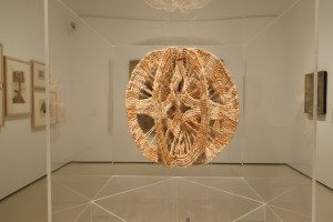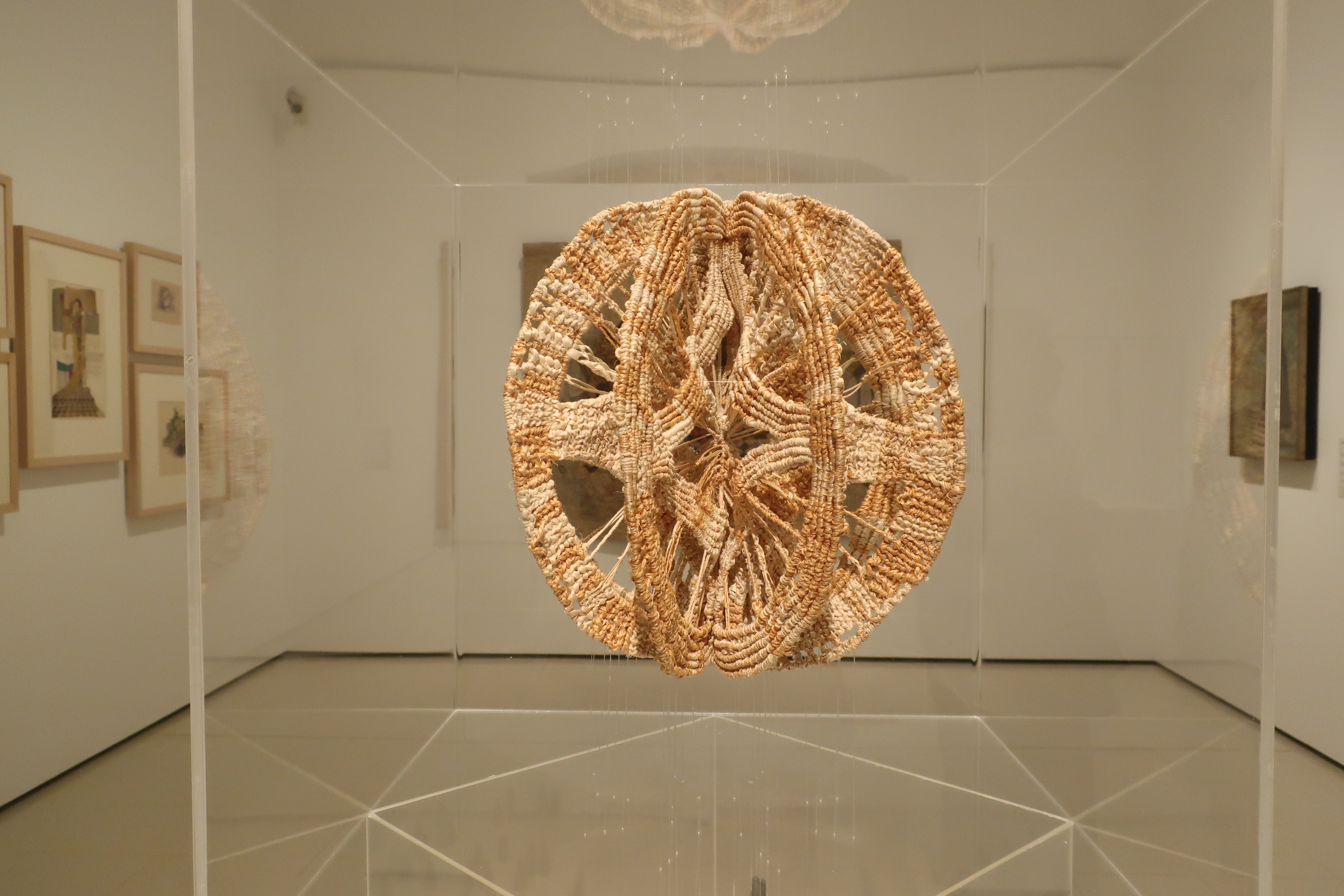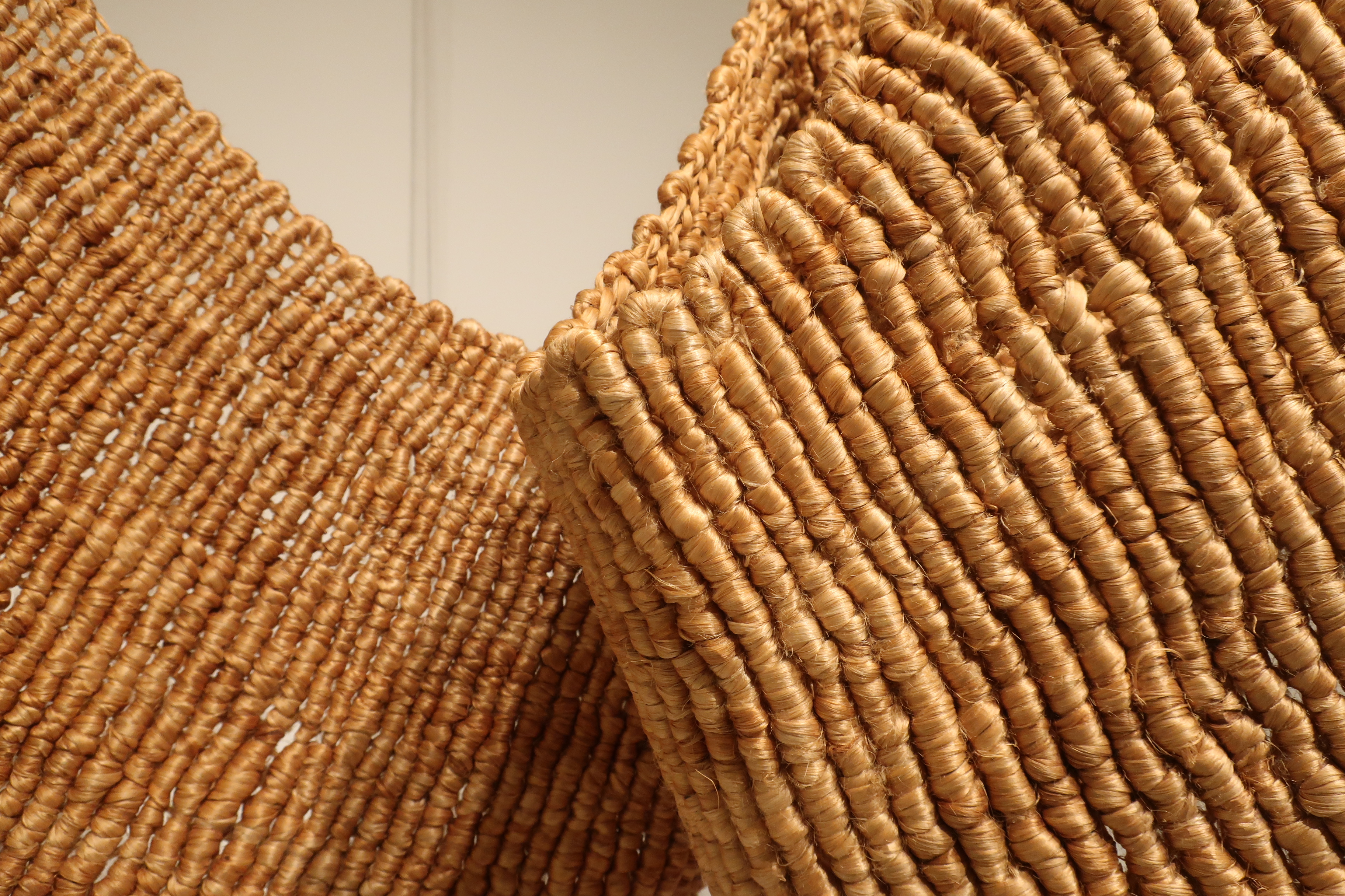 Si cuando era pequeño y empezaba en esto del arte me hubieran dicho que, de muy mayor y más allá de mi afición por el arte contemporáneo y la transgresión artística, no sólo me fijaría sino que también me maravillaría ante obras realizadas con técnicas ancestrales y el uso de fibras naturales y textiles, hubiera dicho que, para que esto sucediera, sin lugar a dudas, antes debía morir. Y esto es justo lo que casi que me pasó -entiendan la metáfora…- cuando al entrar en la sala de Anudar el espacio -precioso titulo de la exposición aunque, en catalán, me guste más: Nuar l’espai– vi pendiendo del techo, la perfecta y grácil contundencia de la obra Ens Social, un bello artefacto en macramé de sisal y yute, creada por Aurelia Muñoz en 1976.