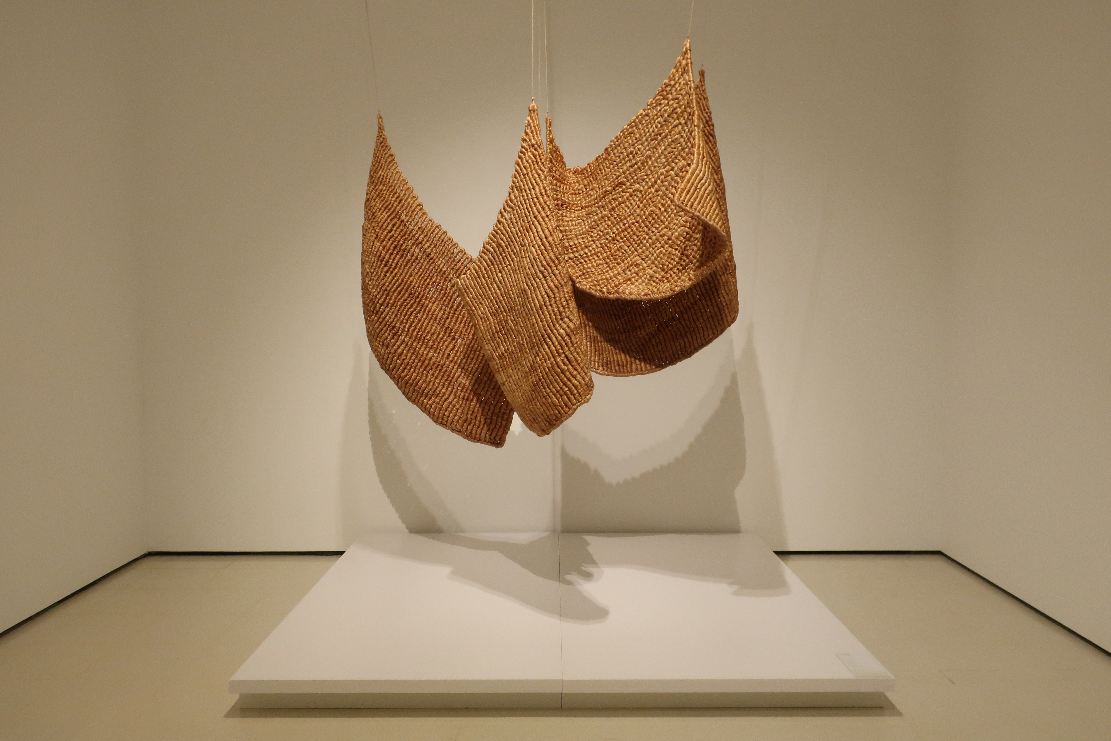 Pero no sólo ésta es la razón por la que Aurelia Muñoz está de actualidad. Resulta que desde su inauguración, el pasado 21 de octubre, el nuevo MOMA de Nueva York expone en una de sus sus salas su obra Águila Beige (1977) una de las tres obras de gran formato -¿deberíamos hablar de esculturas?- que el museo neoyorquino adquirió a principios de este año junto a diez dibujos y varios proyectos. Como parte de las construcciones colgantes que, bajo el título genérico de Entes, Muñoz empieza a tejer a partir de 1974, la obra que se expone en la ciudad de los rascacielos está formada por enormes paneles de yute y sisal trenzado formando lo que, a simple vista, podría ser un pájaro de múltiples alas. Un ente o ser orgánico que, adoptando como piel el nudo noble del macramé tan propio de las antiguas tradiciones árabes, tiene el poder de desdibujar las líneas que transcurren entre el arte, la arquitectura y la artesanía. Algo no muy lejos de las célebres celosías de una buena escultora como Cristina Iglesias.