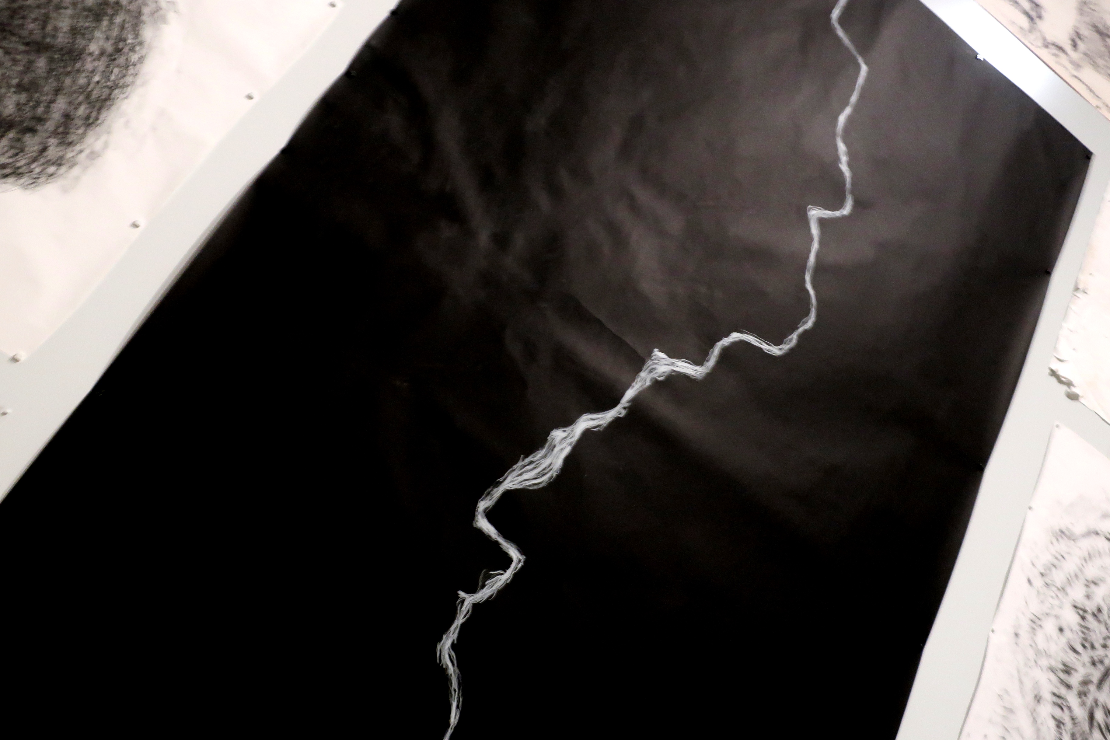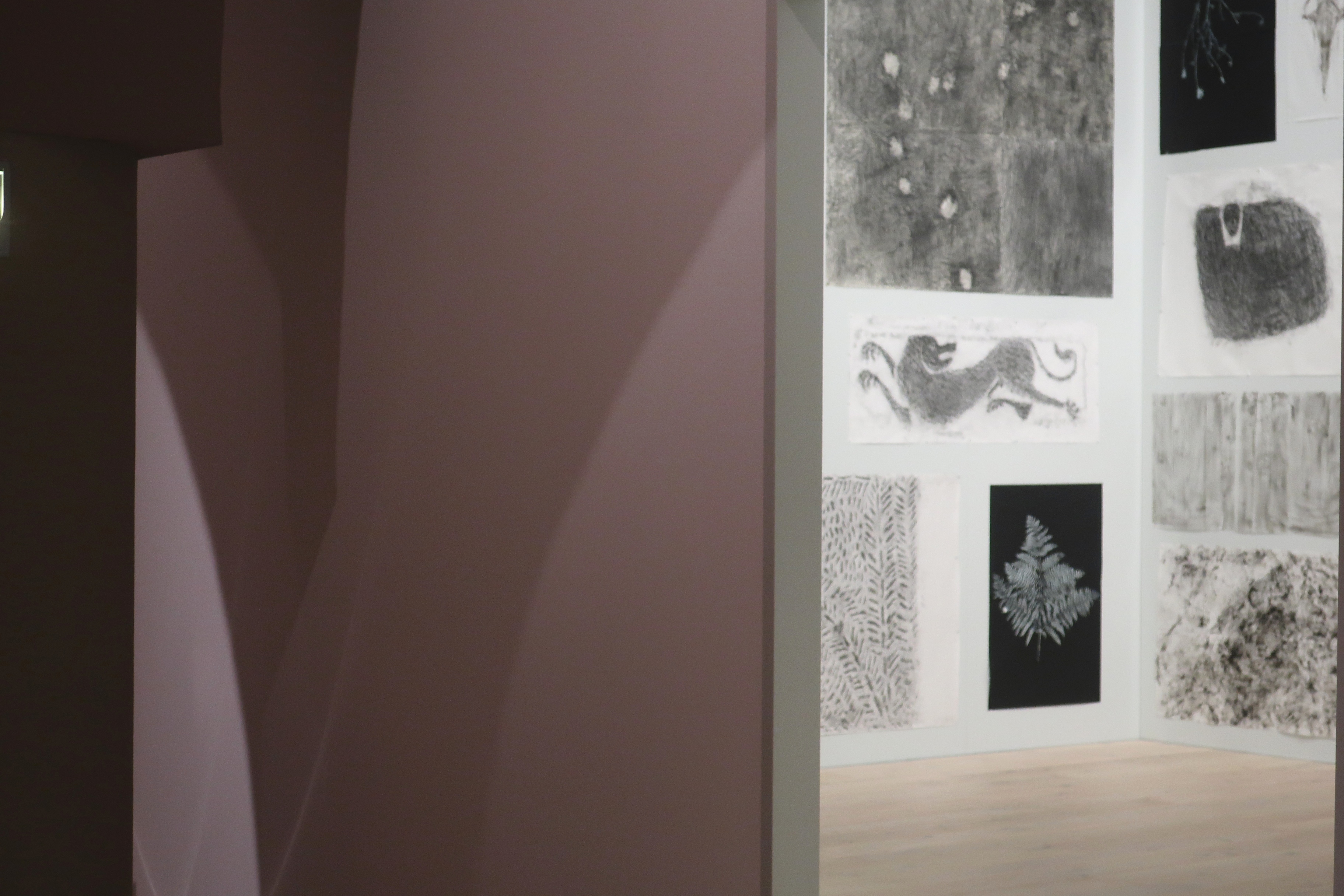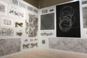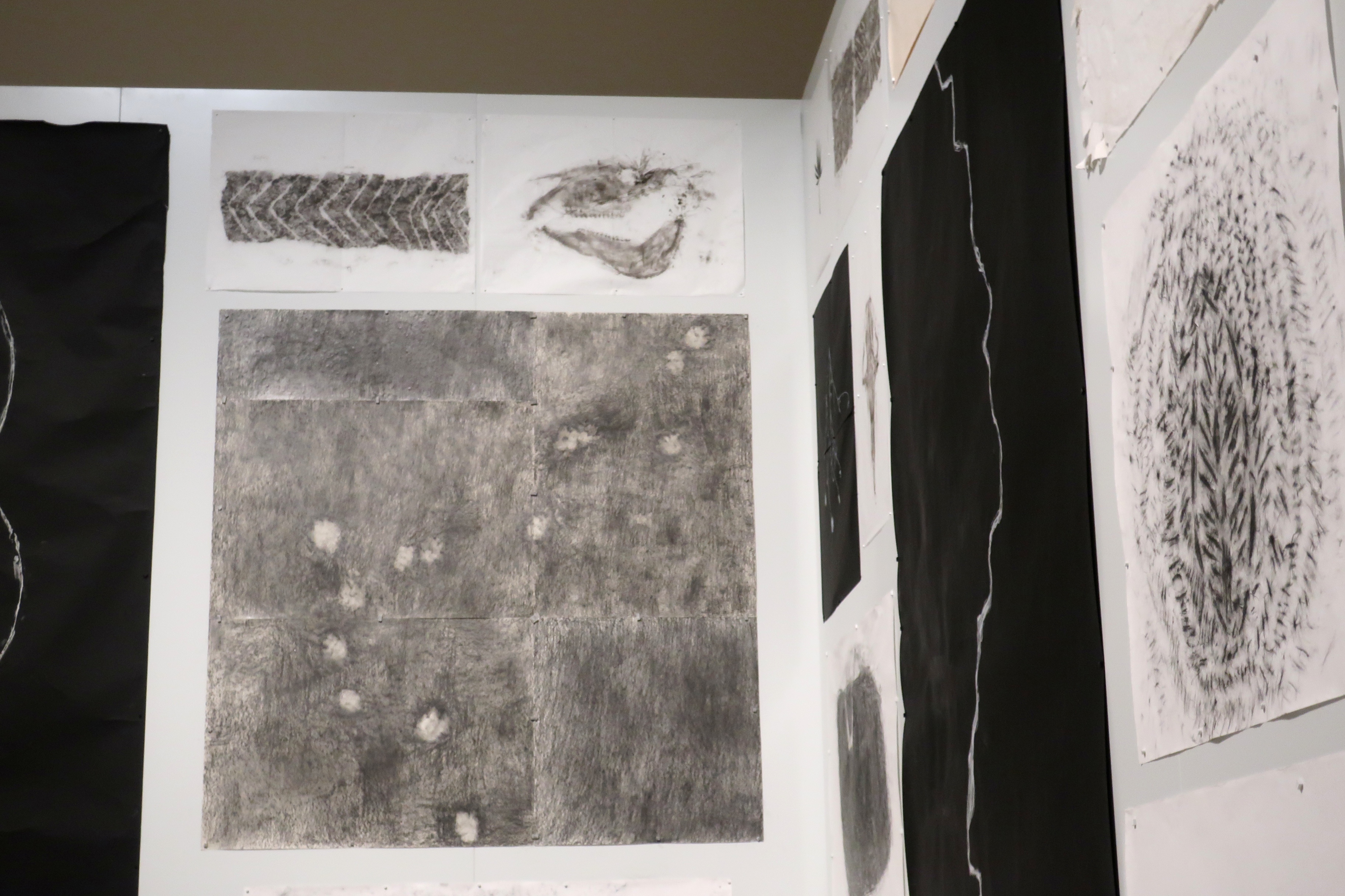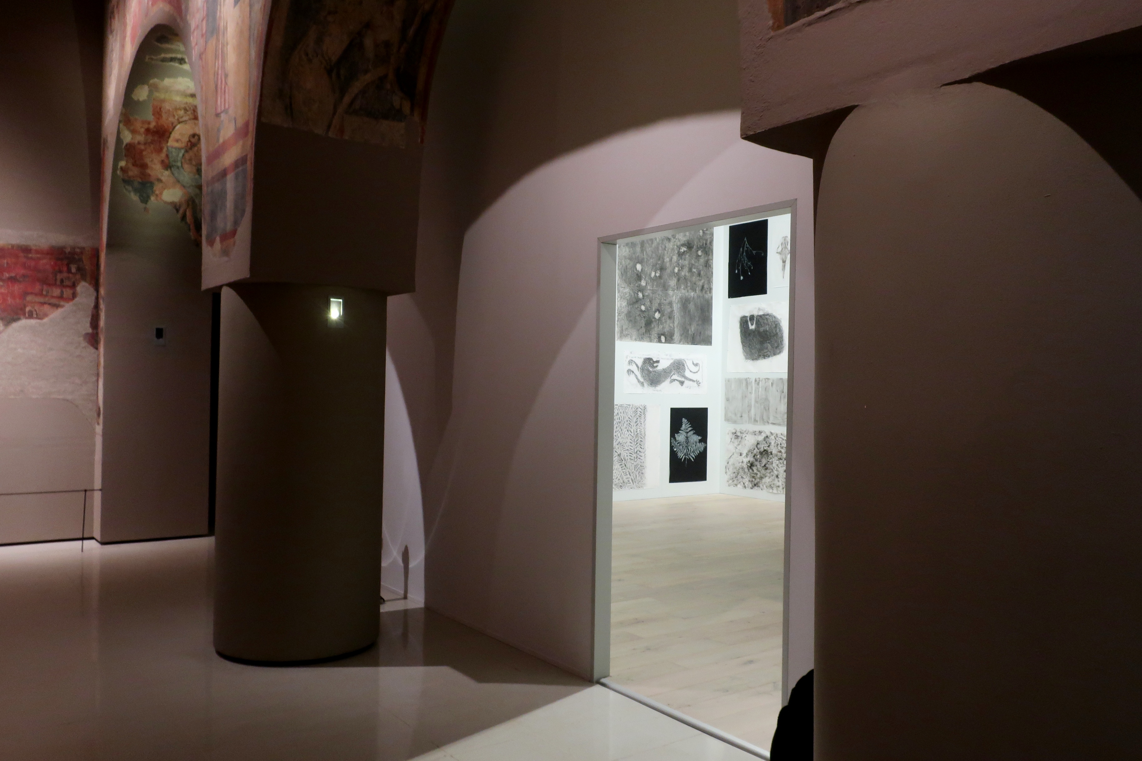 Junto a estos tres frentes magníficamente hilvanados para escribir, entre todos, otro de los ensayos visuales a los que, este artista, nos tiene acostumbrados cada vez que expone su obra, diría que hay uno más y que es el que se desprende del montaje de la exposición en sala: la elocuencia del diálogo que su habitáculo, colmado de frottages en su interior, mantiene con la escenografía que alberga los murales del románico catalán, un periodo sorprendente de nuestra historia y frente al que Oriol no sólo no se amilana sino que impele a interpretar desde una perspectiva transversal, indirecta, heterodoxa, intelectual, imprevisible y, por lo tanto, sugerente.