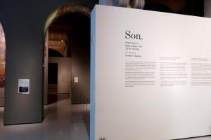 – ochenta papeles de distintos tamaños cubriendo las paredes interiores de un habitáculo blanco de cincuenta metros cuadrados construido ex-profeso en las salas de arte románico del MNAC